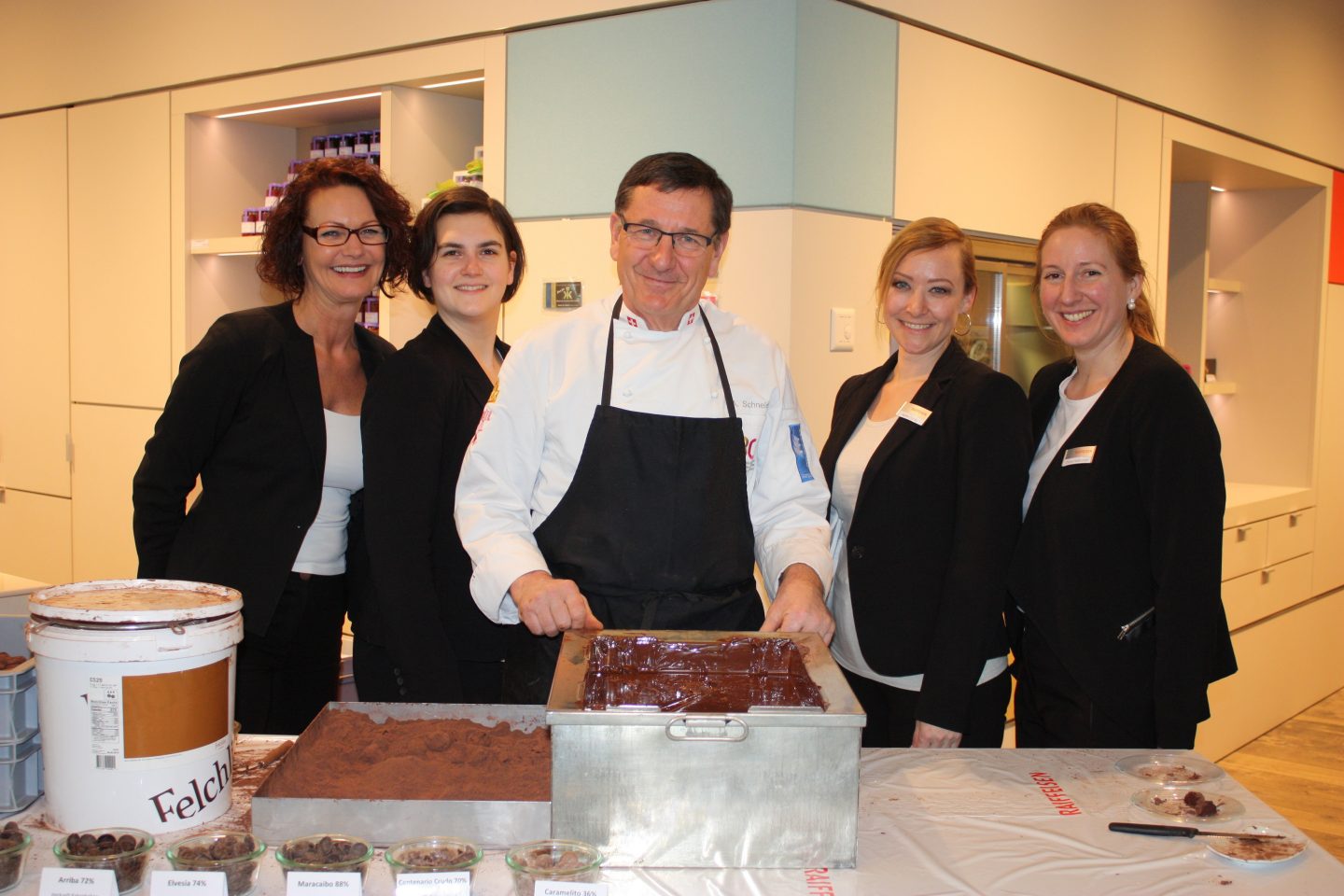 Adrian Schneider von der Kunz AG art of sweets, dem Partner der Begegnungsbank, ermöglichte einen spannenden Einblick in die Welt der Schokolade. Die Gäste durften dem erfahrenen Confiseur bei der aufwändigen Produktion der beliebten Grand-Crus über die Schultern sehen. Die Degustation der frisch hergestellten Pralinés versüsste den Gästen ihren Besuch zusätzlich.