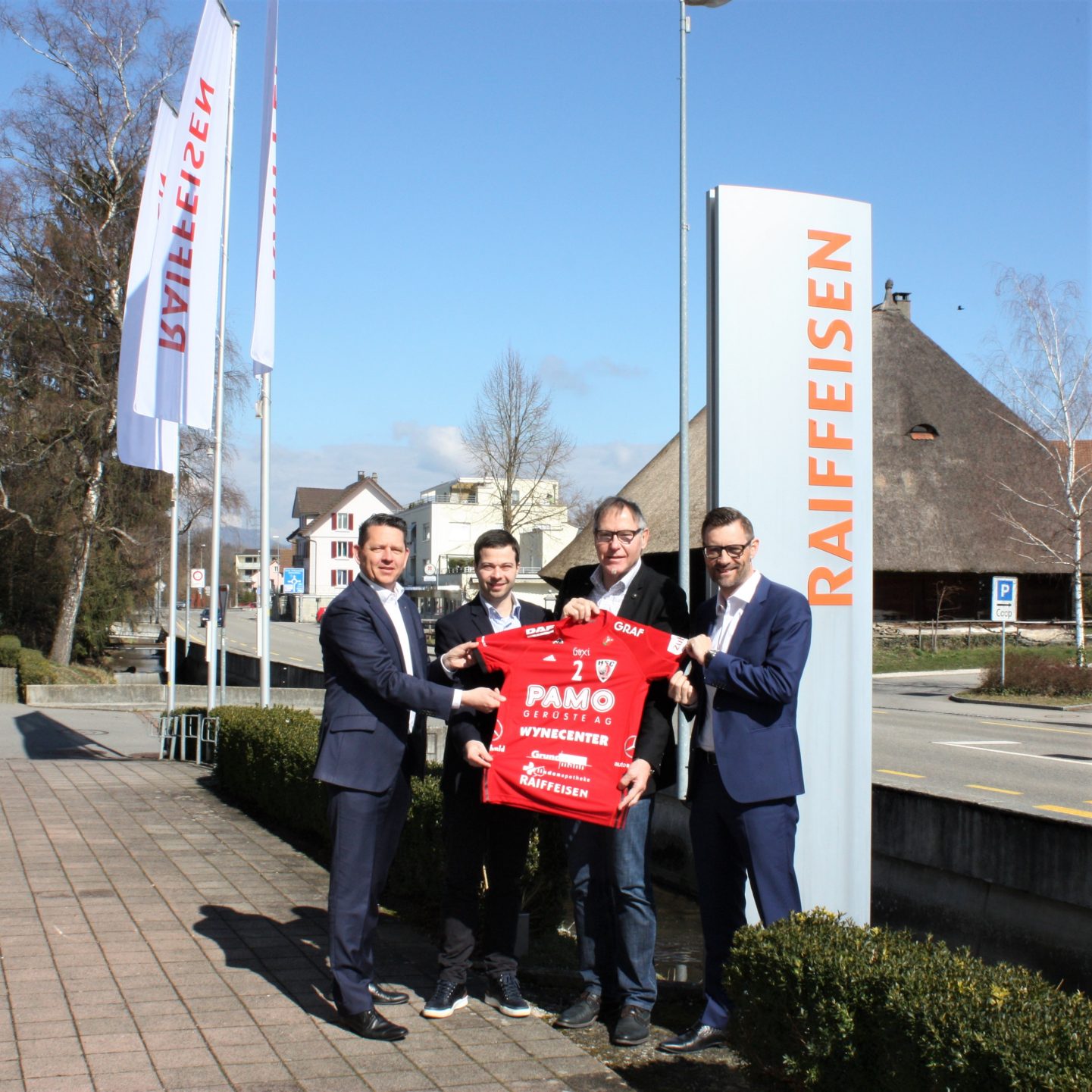Die beiden Partner haben heute in den Räumen der Raiffeisenbank Aarau-Lenzburg durch Stefan Schenkel und Roger Schranz (Raiffeisenbank Aarau-Lenzburg) sowie HSC-Präsident René Zehnder und -Geschäftsführer Lukas Wernli den Partnervertrag unterzeichnet.
