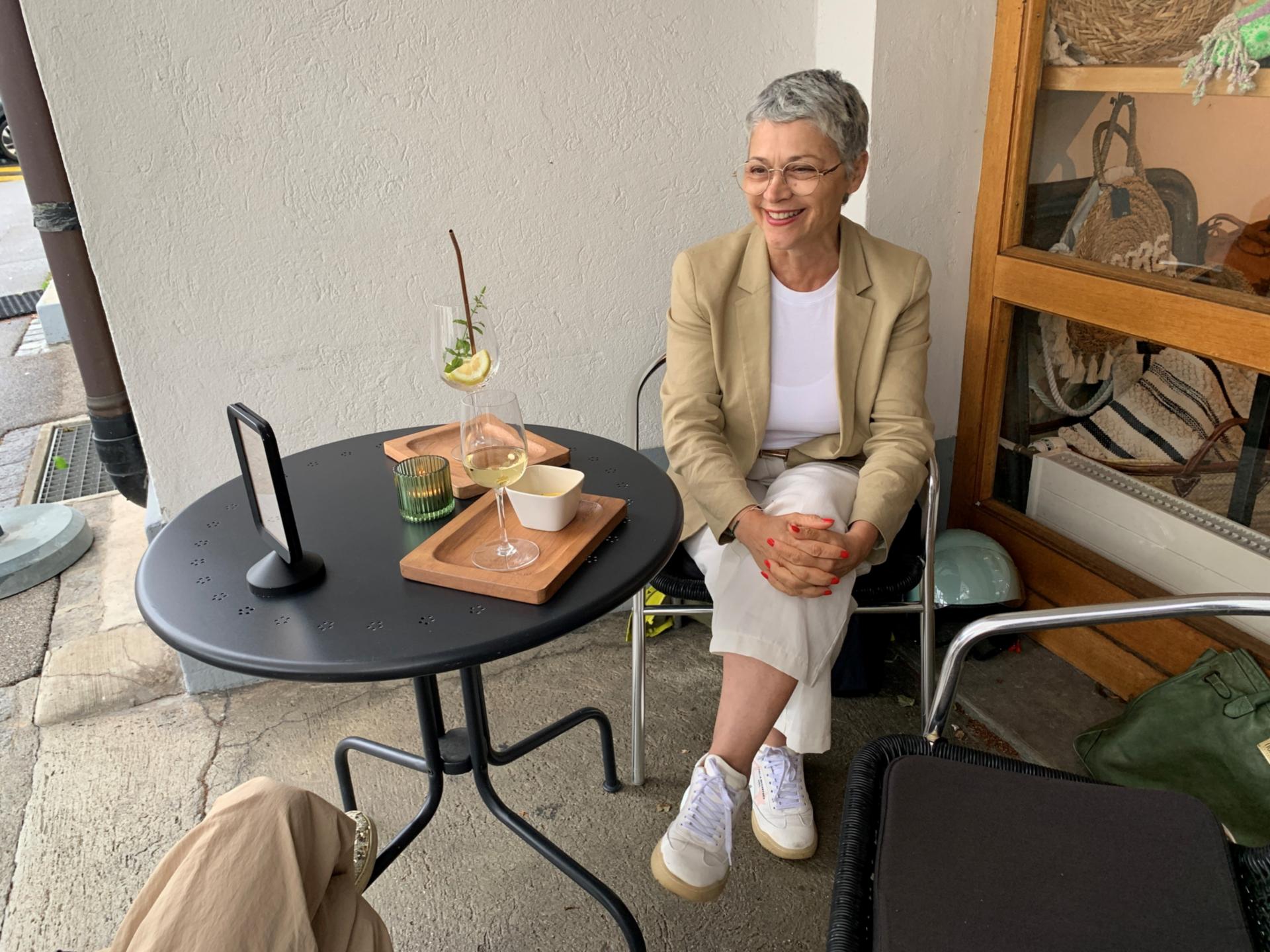 Carmela liebt das entspannte Ambiente im Eckhouse, wo sie im Sommer gerne einen guten Wein geniesst. «Das Klima und die Atmosphäre dort sind perfekt für mich», schwärmt unsere Gastgeberin. «Ausserdem entdecke ich immer wieder schöne Accessoires und gute Feinkost.» Sie schätzt aber auch das freundliche und zuvorkommende Personal. Ganz besonders die «gute Fee» Ursula Schuhmacher, die mit ihrem Charme viel Herzlichkeit in Café und Laden bringt.
