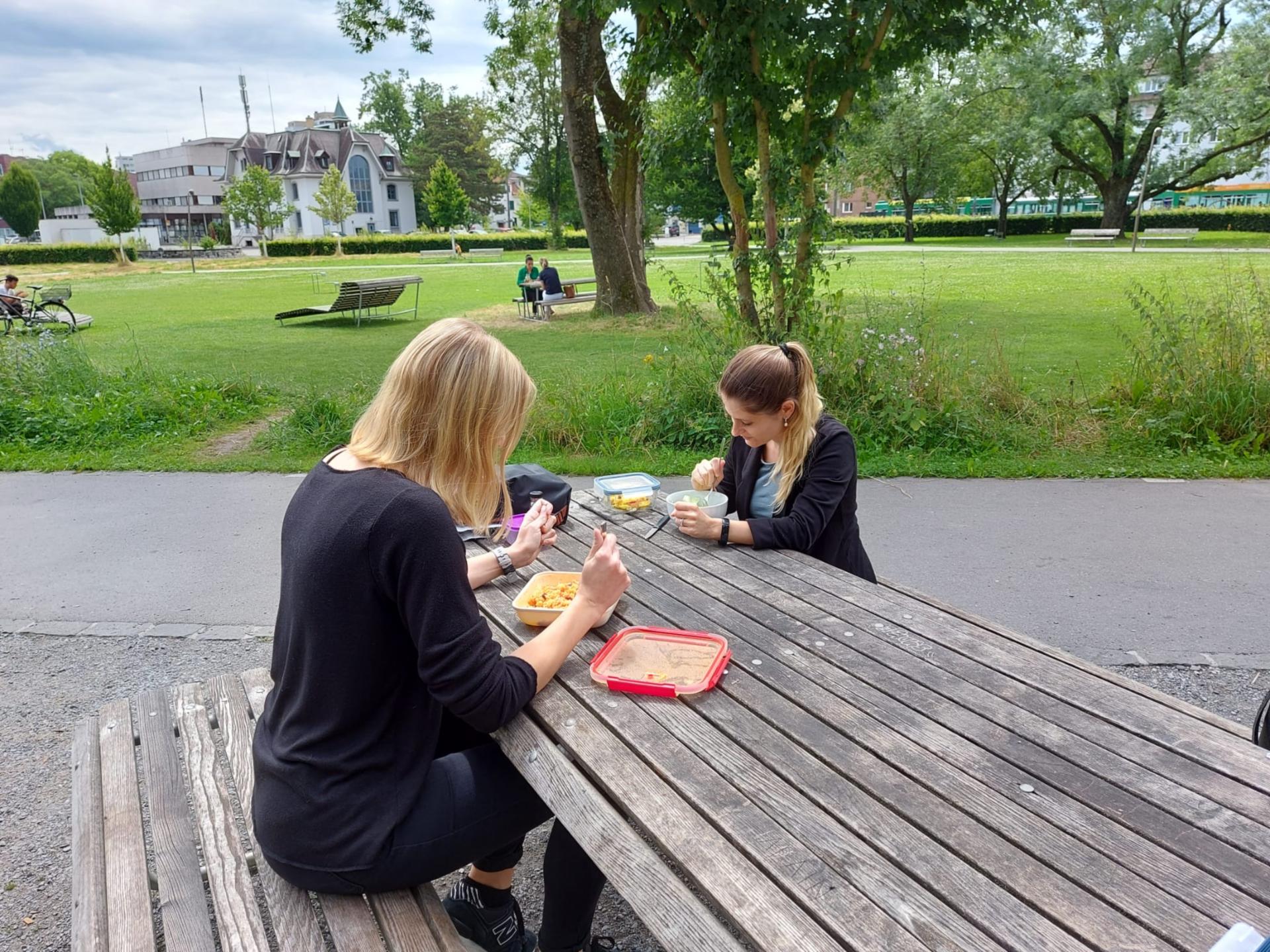Melanie, Barbara und Lisa: Mittagspause im Wegmattenpark