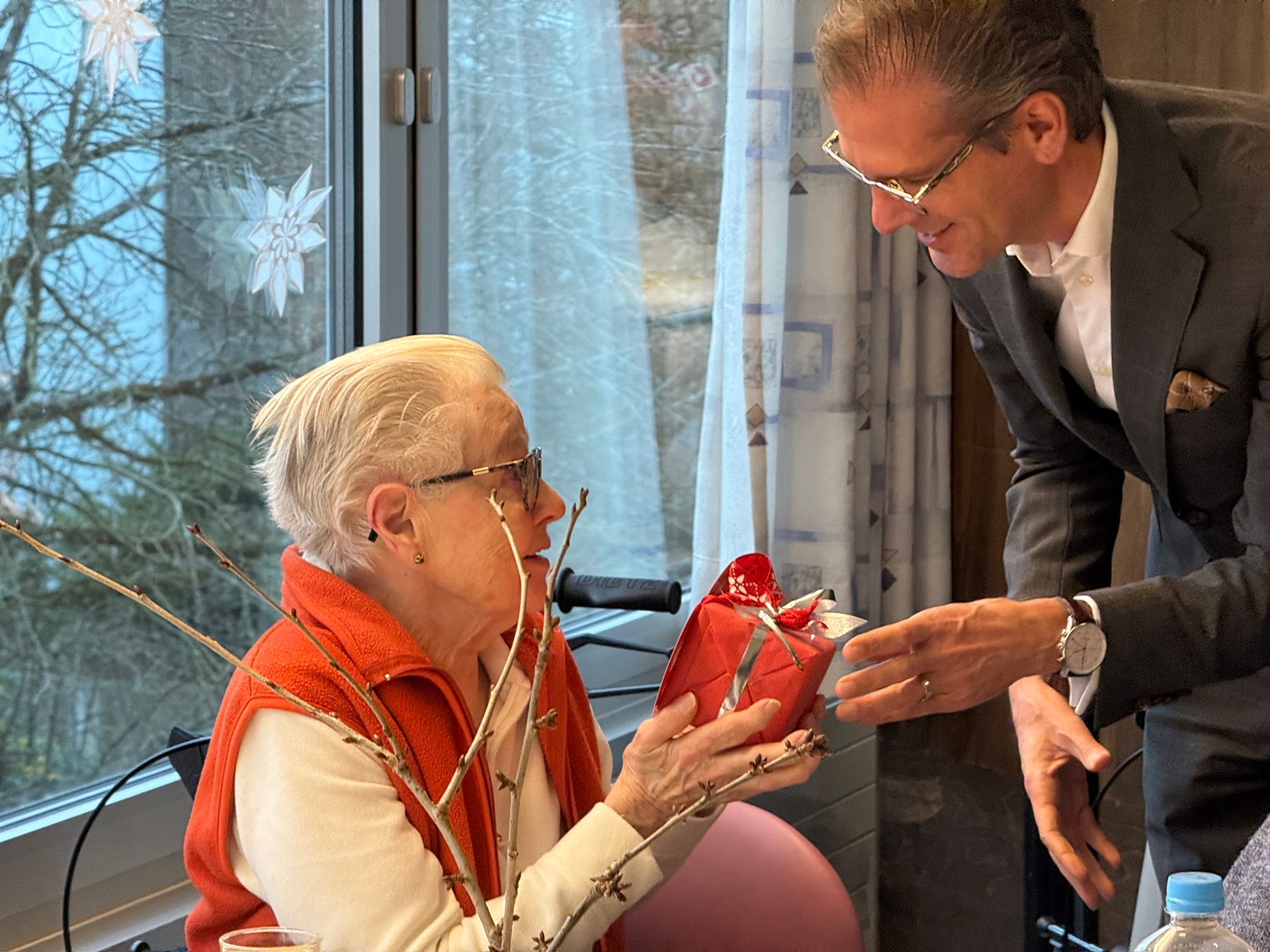 Am 15. und 16. Dezember überbrachte die Bankleitung die liebevoll verpackten Geschenke persönlich an die Bewohnerinnen und Bewohner in den Alterszentren. In Niedergösgen sorgte die Panflöten-Gruppe «Pangrosinis» für eine stimmungsvolle musikalische Begleitung. Die Freude und Dankbarkeit der Seniorinnen und Senioren war überwältigend und machte die Übergabe für alle Beteiligten zu einem besonderen Moment.