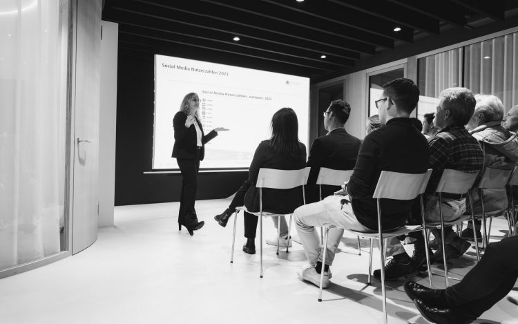 In einem kurzen Impulsreferat zeigte Sonja Berger vom Raiffeisen Unternehmerzentrum Spannendes zum Thema «Arbeitswelt 4.0 – So begegnen Sie dem Fachkräftemangel und nutzen Social Media für die Rekrutierung» auf.