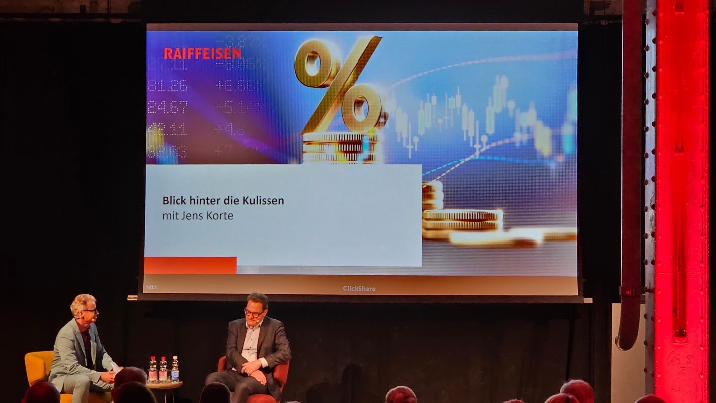 Beim anschliessenden Apéro wurden die durch Raiffeisen zuvor vorgestellten Anlageideen noch intensiver besprochen und auch Jens Korte beteiligte sich an spannenden Diskussionen. Die Gäste schätzten diesen nahen und unkomplizierten Austausch mit dem «Mr. Wallstreet» sehr.