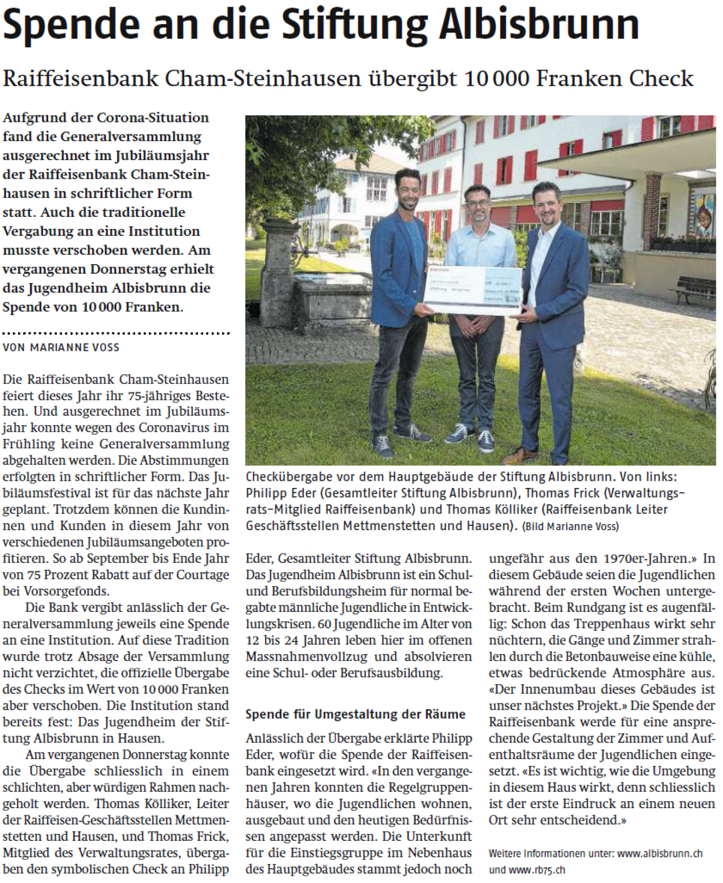 Zeitungsartikel vom 18. August 2020, Anzeiger aus dem Bezirk Affoltern