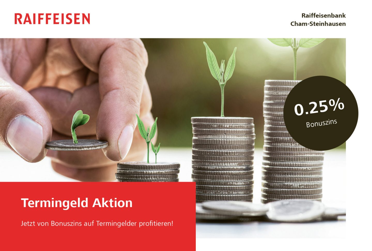 Die Aktion gilt nur für Termingelder von CHF 5'000.00 bis CHF 250'000.00, mit einer Laufzeit von 2 bis 10 Jahre, welche bis zum 30.06.2023 abgeschlossen werden.