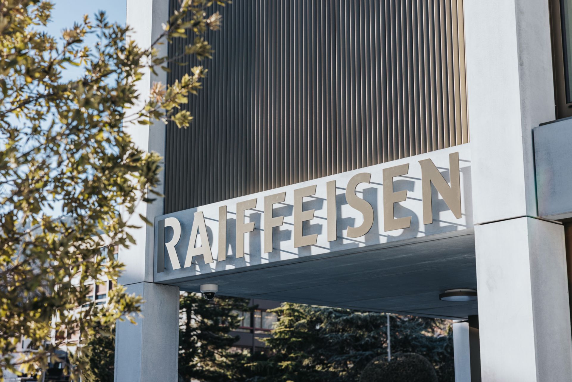 Dans cet ensemble du rez-de-chaussée, la ligne intérieure des méandres qui se poursuit dans la salle Event pour se finir en pergola habillée de vigne grimpante dans la cour participe à l’identité visuelle de la banque. Cette ligne cohérente dresse le portrait de la banque Raiffeisen comme instance locale et symbolise son ancrage dans son environnement.