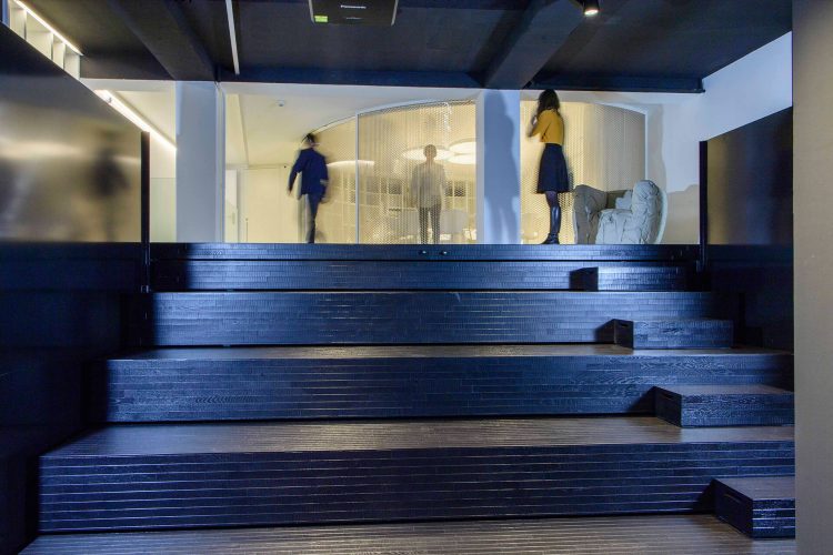 Gli architetti del Forum Raiffeisen – Gaffurini Pagani Tresoldi Associati di Balerna in Ticino – descrivono la complessità del Forum attraverso gli elementi del teatro. Il fulcro del Forum è una grande sala per eventi e conferenze con tribuna retrattile, parete a LED, schermo e illuminazione regolabile in modo flessibile. È un luogo in cui persone del mondo degli affari, della politica e della società fanno rete, talvolta da partecipanti e talvolta da protagonisti dell'arena.