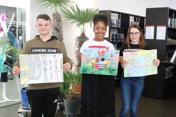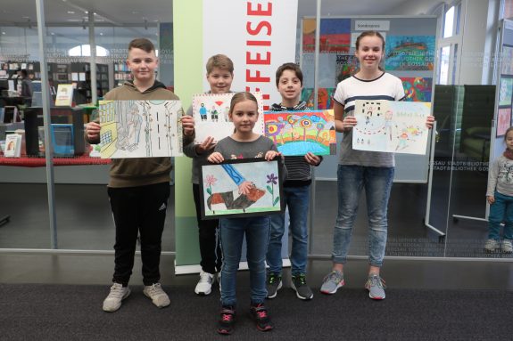 Die Sieger der 6. Klasse präsentieren ihre Kunstwerke -