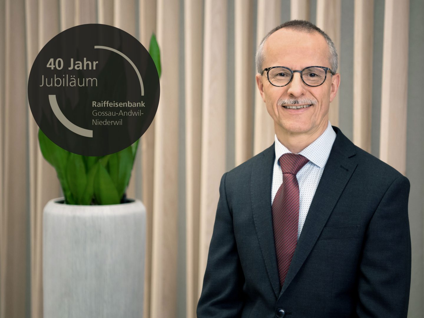 «Im Namen des Verwaltungsrates und der Bankleitung gratuliere ich ihm zum Erreichen dieser bedeutenden, nicht alttäglichen Wegmarke in einem langen, bewegten und erfolgreichen Berufsleben», so Roger Wichser, Vorsitzender der Bankleitung. 40 Berufsjahre durfte die Raiffeisenbank Gossau-Andwil-Niederwil stets auf sein grosses und engagiertes Wirken zählen. Die Bank dankt ihm für die ebenso angenehme wie erfolgreiche Zusammenarbeit und wünscht ihm für die Zukunft alles Gute und viel Gesundheit.