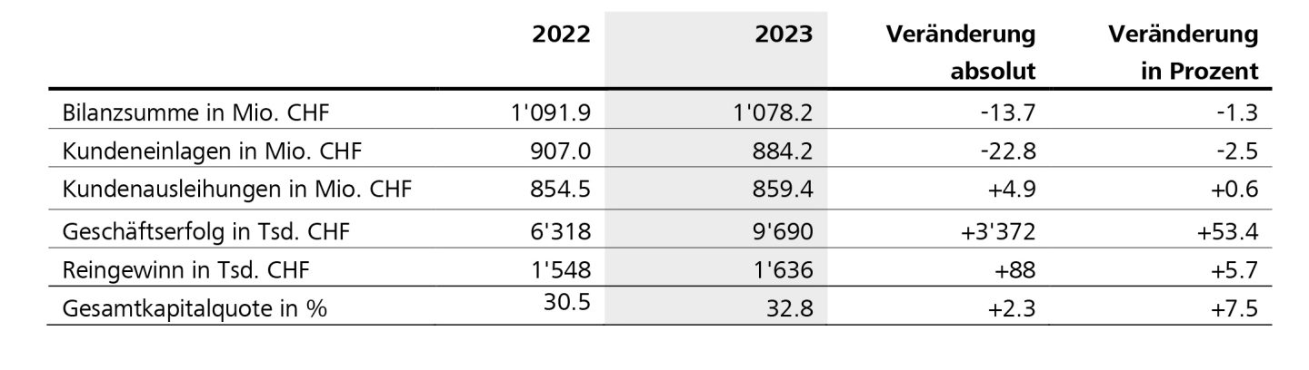 Die Raiffeisenbank Gossau-Andwil-Niederwil darf auf ein erfolgreiches Geschäftsjahr mit einem Jahresgewinn von 1,64 Millionen Schweizer Franken (+5,7 Prozent gegenüber Vorjahr) zurückblicken – dieser wird zum grössten Teil thesauriert, fliesst also in die eigenen Reserven. Zum erfreulichen Gewinn beigetragen haben unter anderem das Zinsen- und Hypothekargeschäft sowie das Anlagegeschäft. Das Volumen der gesprochenen Hypotheken ist von 833,5 Millionen (2022) auf 842,5 Millionen gewachsen, was einem Anstieg von 1,1 Prozent gegenüber dem Vorjahr entspricht. Die Kundeneinlagen haben sich um –22,8 Millionen Franken (–2,5 Prozent) reduziert, wobei rund 10,8 Millionen Franken in Wertschriften und Anlagen transferiert wurden. Trotz unsicherer Marktlage, geprägt unter anderem durch Krieg in der Ukraine und im Nahen Osten, haben viele Kundinnen und Kunden auf die Vermögensanlage der Raiffeisenbank Gossau-Andwil-Niederwil vertraut. Das zeigt sich nunmehr auch im Depotbestand, der per 31. Dezember 2023 278 Millionen Franken (Vorjahr: 258 Millionen Franken) betrug.