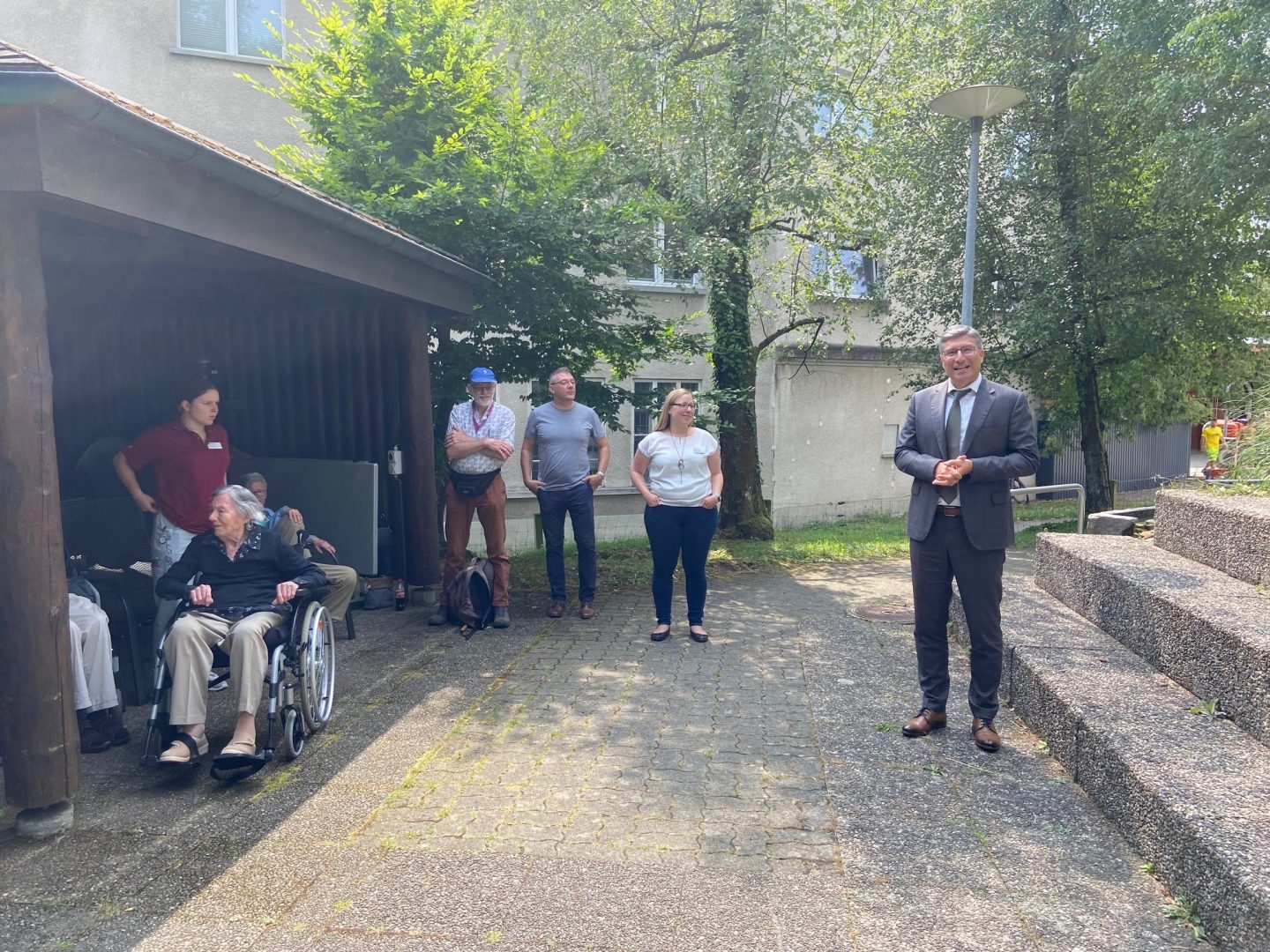 Gianfranco Aloise, Stv. Vorsitzender der Bankleitung der Raiffeisenbank Horw begrüsste die Bewohnerinnen und Bewohner sowie die Mitarbeitenden vom Blickfeld.