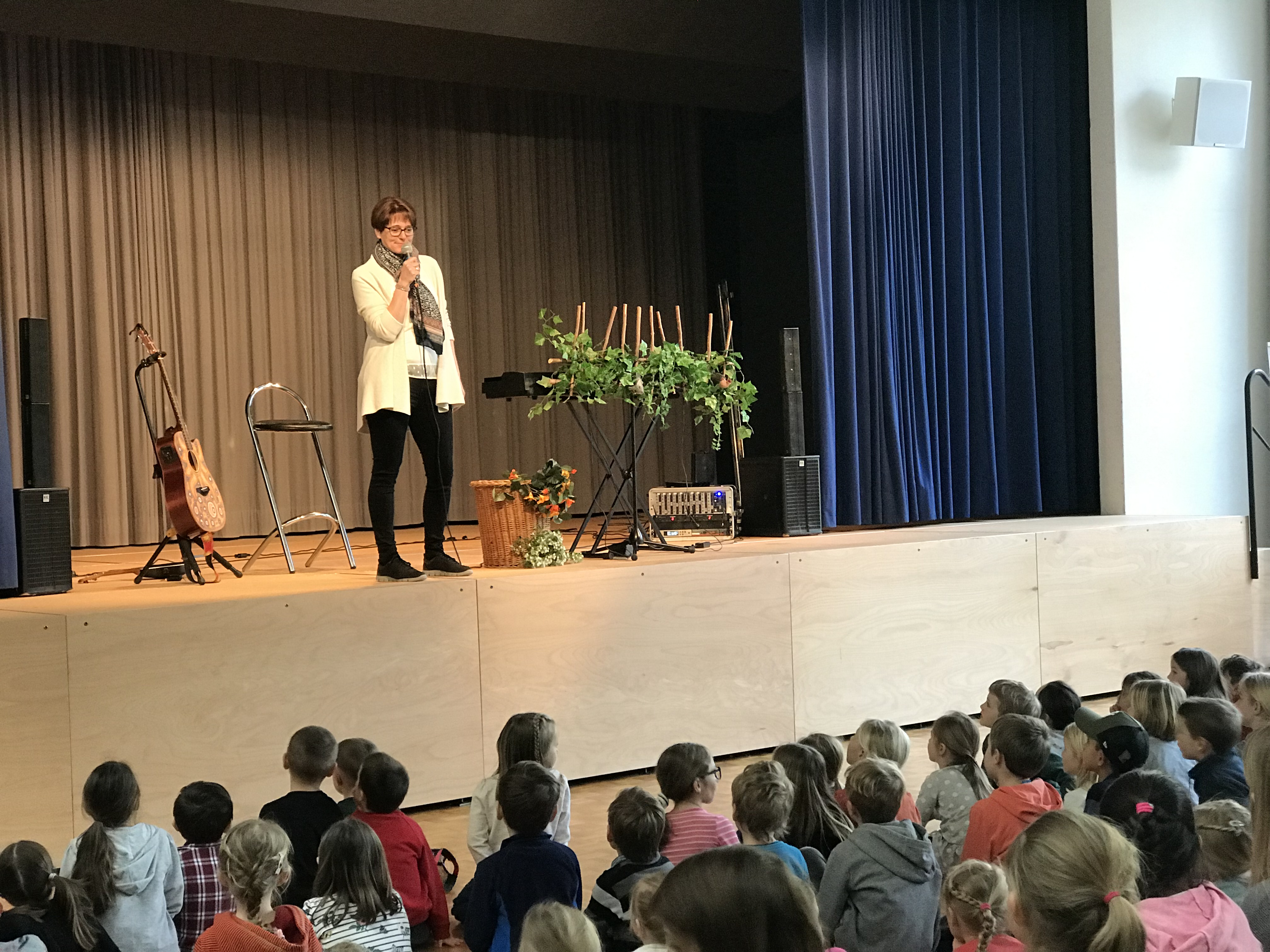 Verwaltungsrätin Sarah Ming begrüsst die Kinder zum Konzert.