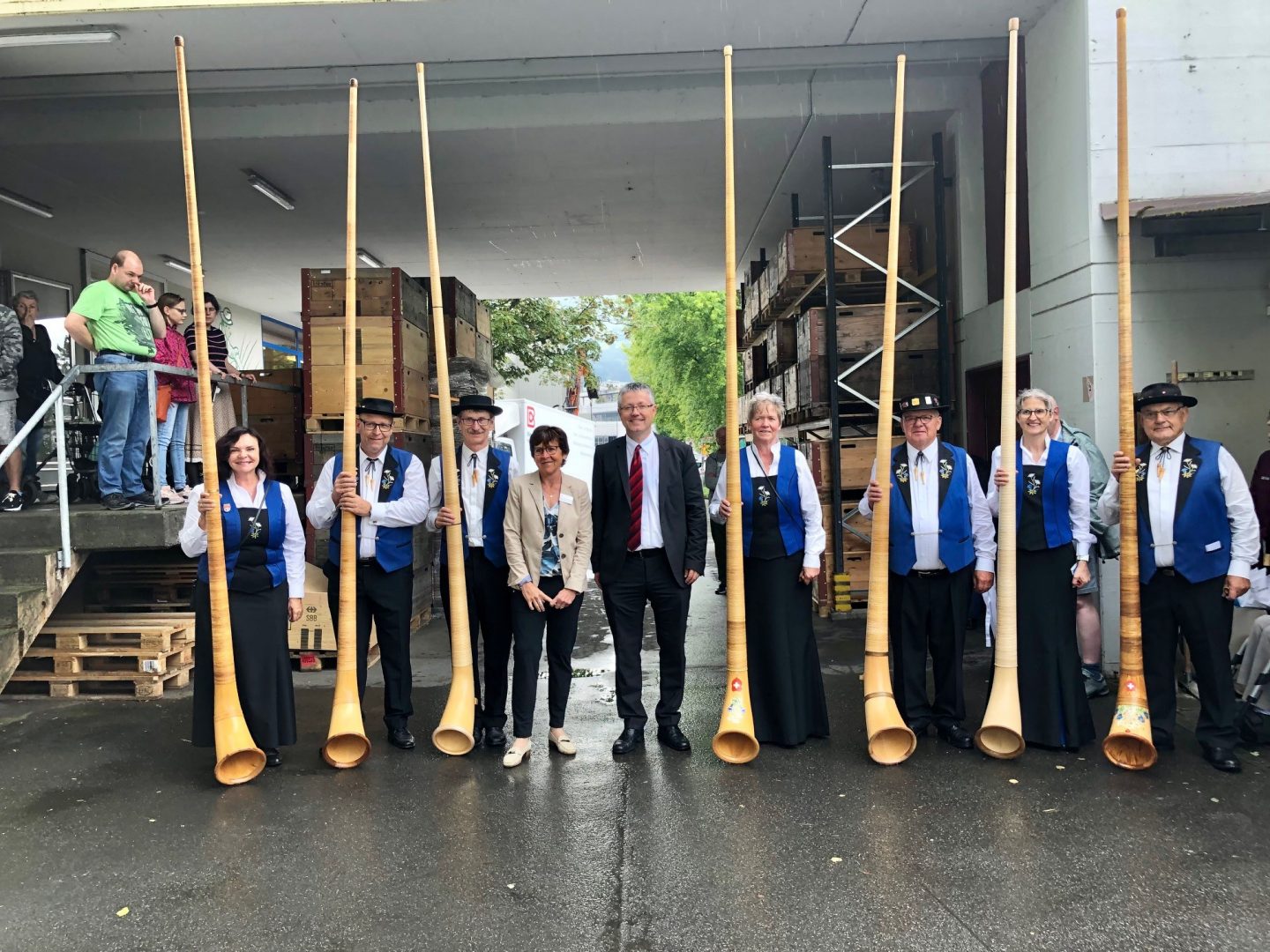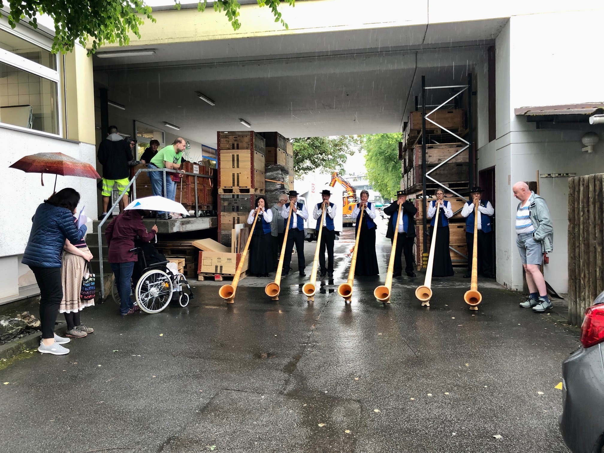 Auch die Mitarbeitenden der Werkstatt wurden mit Alphornmelodien überrascht.