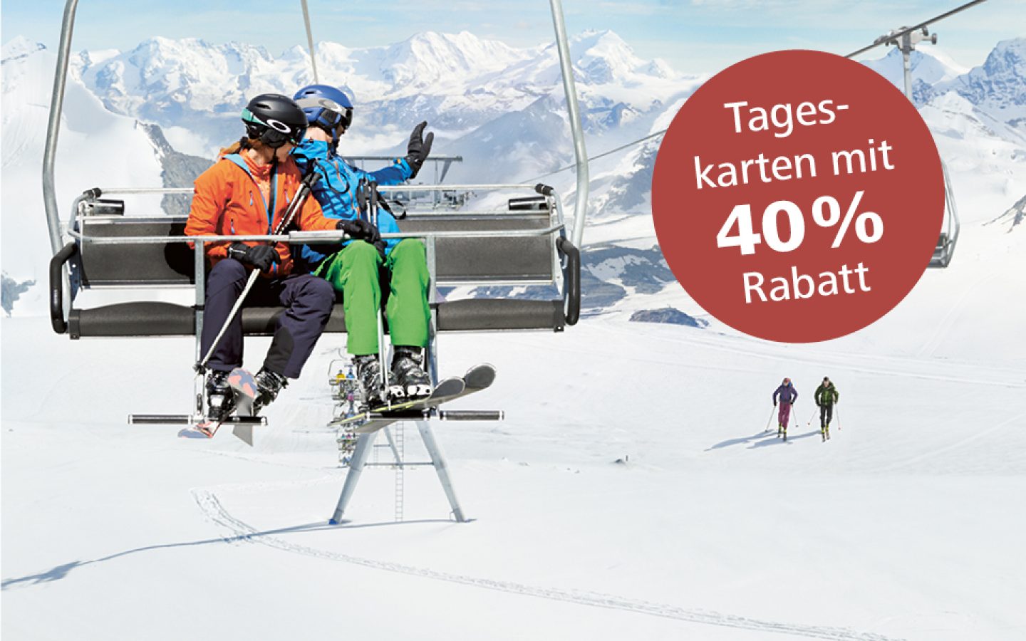 Für die Wintersaison 2018/2019 können Raiffeisen-Mitglieder Ihre personalisierten Gutscheine für eine ermässigte Ski-Tageskarte direkt online erstellen. Die persönlichen Gutscheine sind an den Kassen der teilnehmenden Skigebiete einzulösen. Gegen Zahlung mit der Raiffeisen Maestro-Karte, V PAY-Karte oder Kreditkarte gibt es 40 % Rabatt. Die Gutscheine sind in der Regel von Montag bis Freitag sowie an einzelnen Wochenenden gültig.