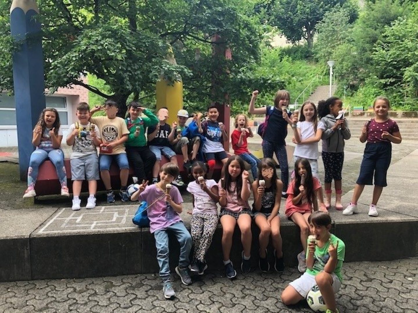 Die teilnehmenden Kinder des Schulhaus Spitz in Horw mit der wohlverdienten Erfrischung.