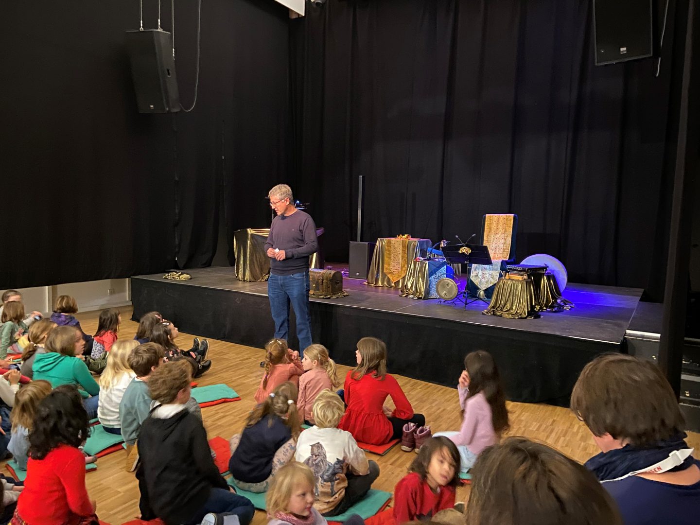 Gespannte Kinder lauschen den Worten von Jolanda Steiner.