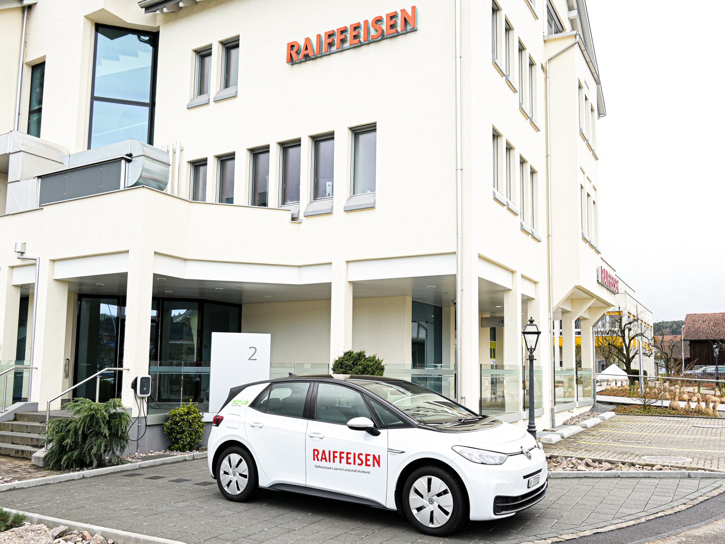 VW ID3 vor der Raiffeisenbank in Schötz