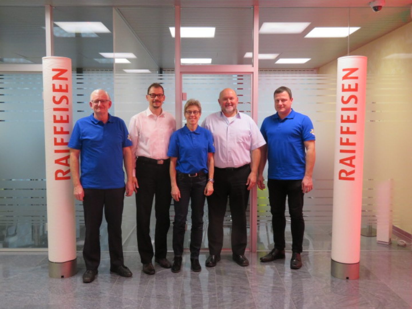 Von links nach rechts: Markus Birrer, Vize Präsident – Sponsoring, Guido Bernhard, Raiffeisenbank, Helen Schurtenberger, OK-Präsidentin, Andres Berger, Raiffeisenbank, Pius Frei, Vize Präsident – Sponsoring