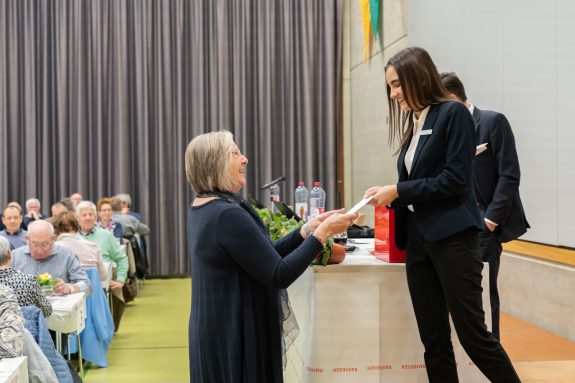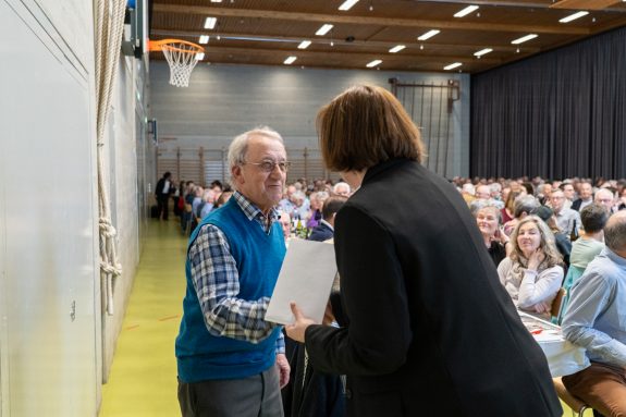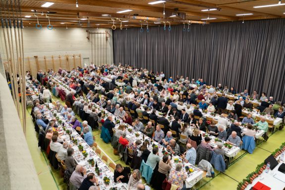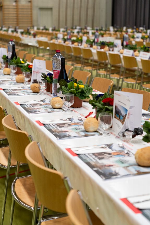 Nach dem offiziellen Teil der Generalversammlung wurden sechs langjährige Genossenschafterinnen und Genossenschafter für ihre Mitgliedschaftsjubiläen geehrt. Das Team rund um Peter Hegglin vom Restaurant Ochsen sorgte während des Abends für das leibliche Wohl der Versammlungsteilnehmenden und verwöhnte sie mit einem hervorragenden Essen.