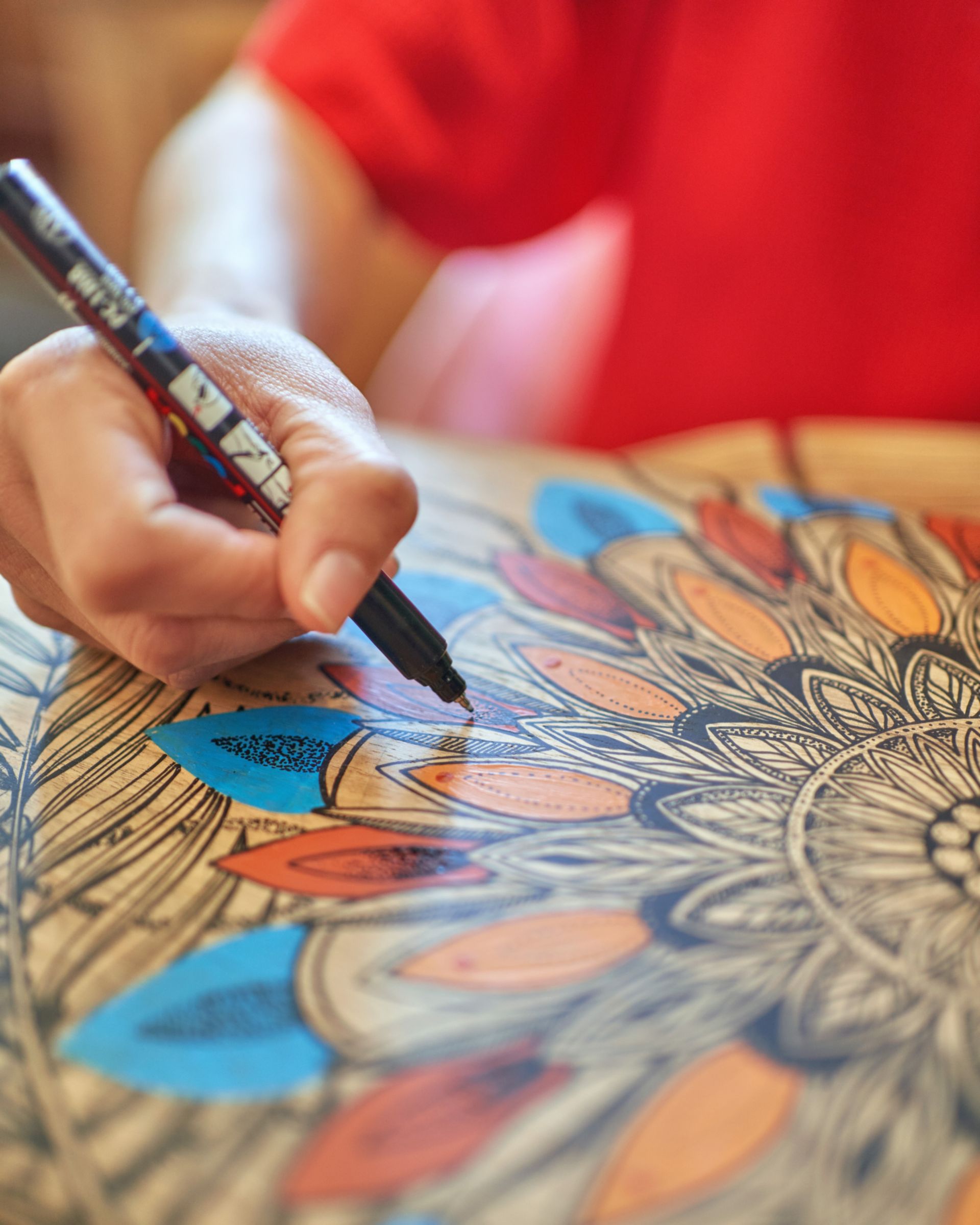 Sa signature : l’humain en lien avec la nature, un mandala, l’engagement personnel, la créativité et un accueil sans pareil.