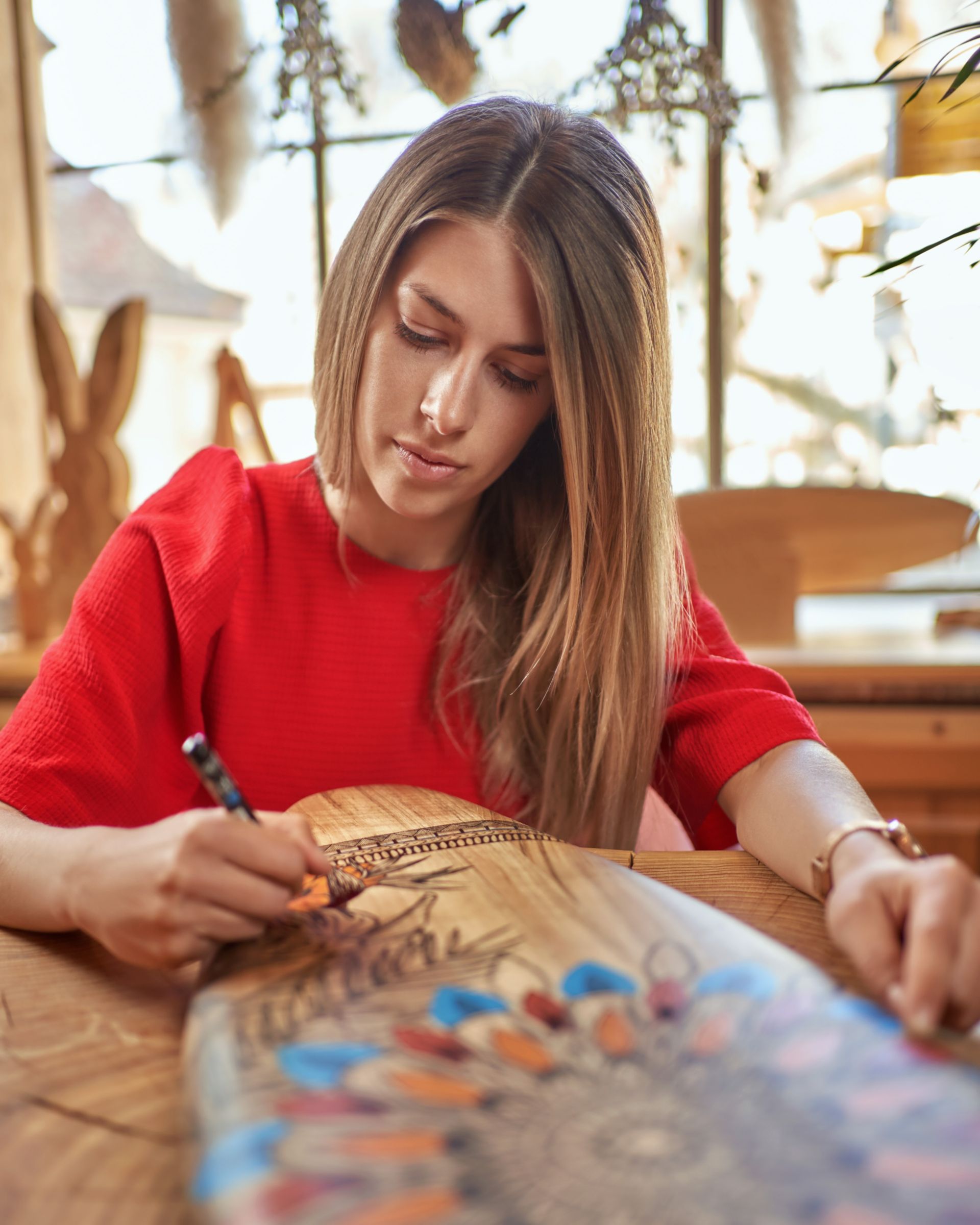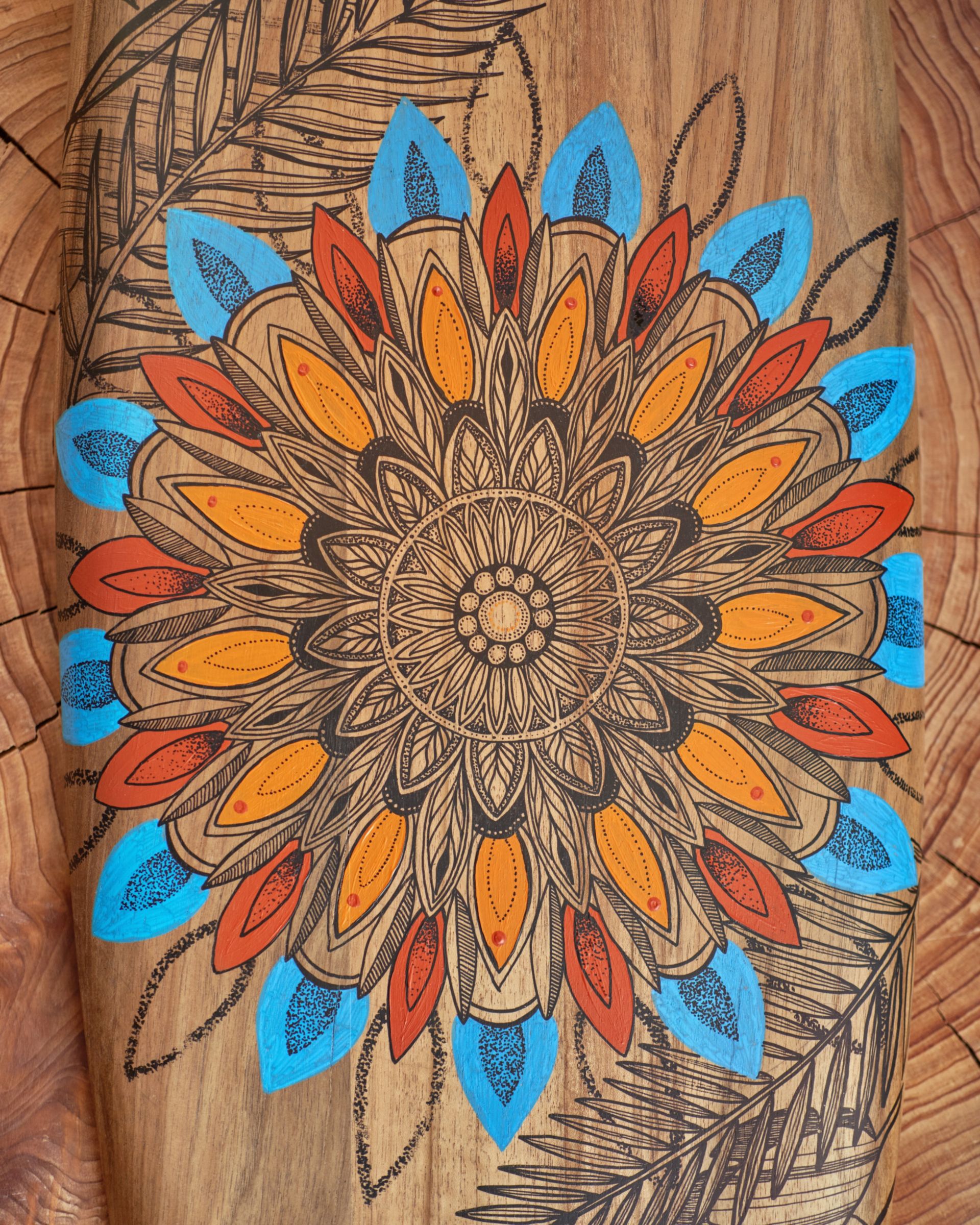 Elle n’utilise et ne sublime par ses dessins que des bois indigènes qui, en raison des sécheresses successives, ont perdu beaucoup de leur potentiel. Elle leur donne ainsi la capacité de nous faire voyager dans les plus beaux endroits de notre imaginaire.