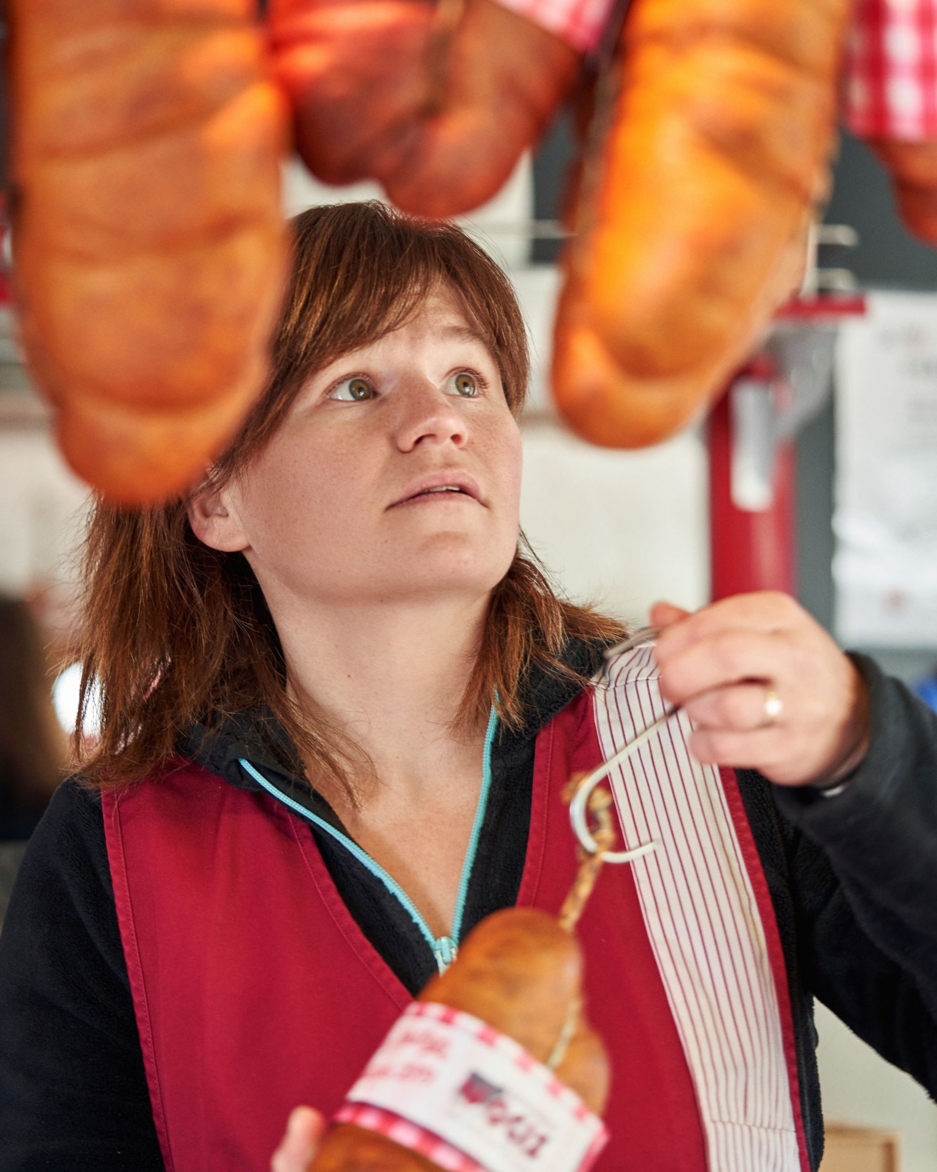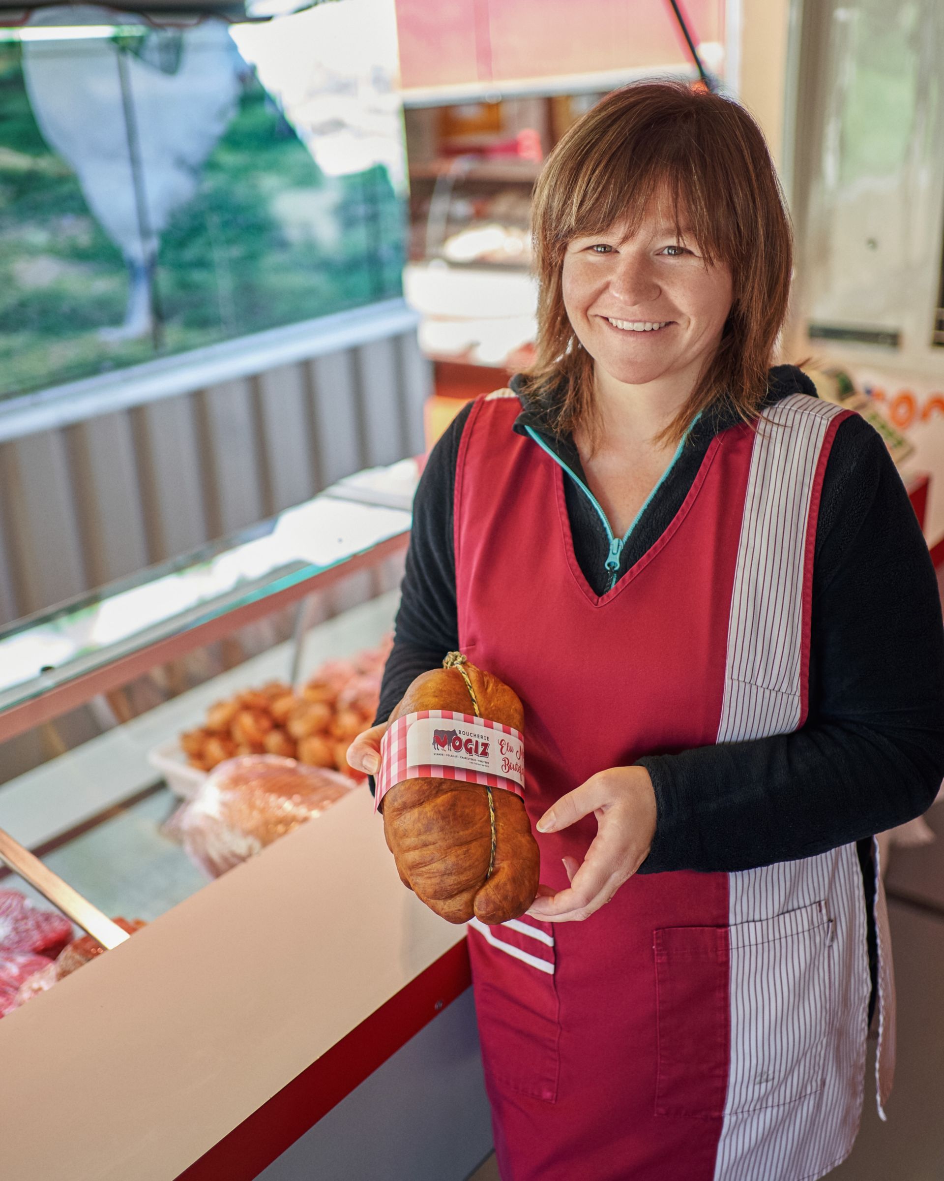 Stéphanie, c’est d’abord un sourire, la passion de son métier et de son entreprise, la Boucherie Ogiz SA. Épanouie, fière et investie, elle poursuit le travail d’une vie que son papa, Jean-Claude Ogiz, a débuté en 1995 lorsqu’il a repris l’entreprise de son père et l’a développée davantage.