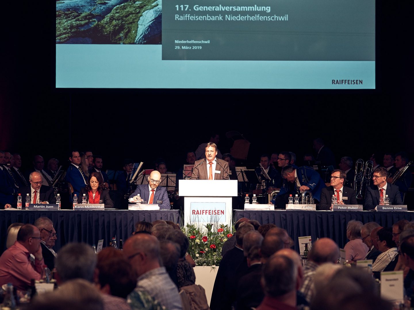 An der ordentlichen Generalversammlung vom Freitag, 29. März 2019, berichtete die Raiffeisenbank Niederhelfenschwil vom erfolgreichen Jahr 2018. Für gute Unterhaltung sorgte Komiker und Satiriker Michael Elsener sowie die «Musig» Lenggenwil.