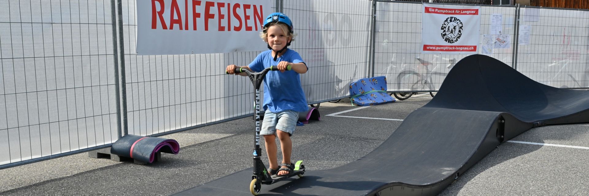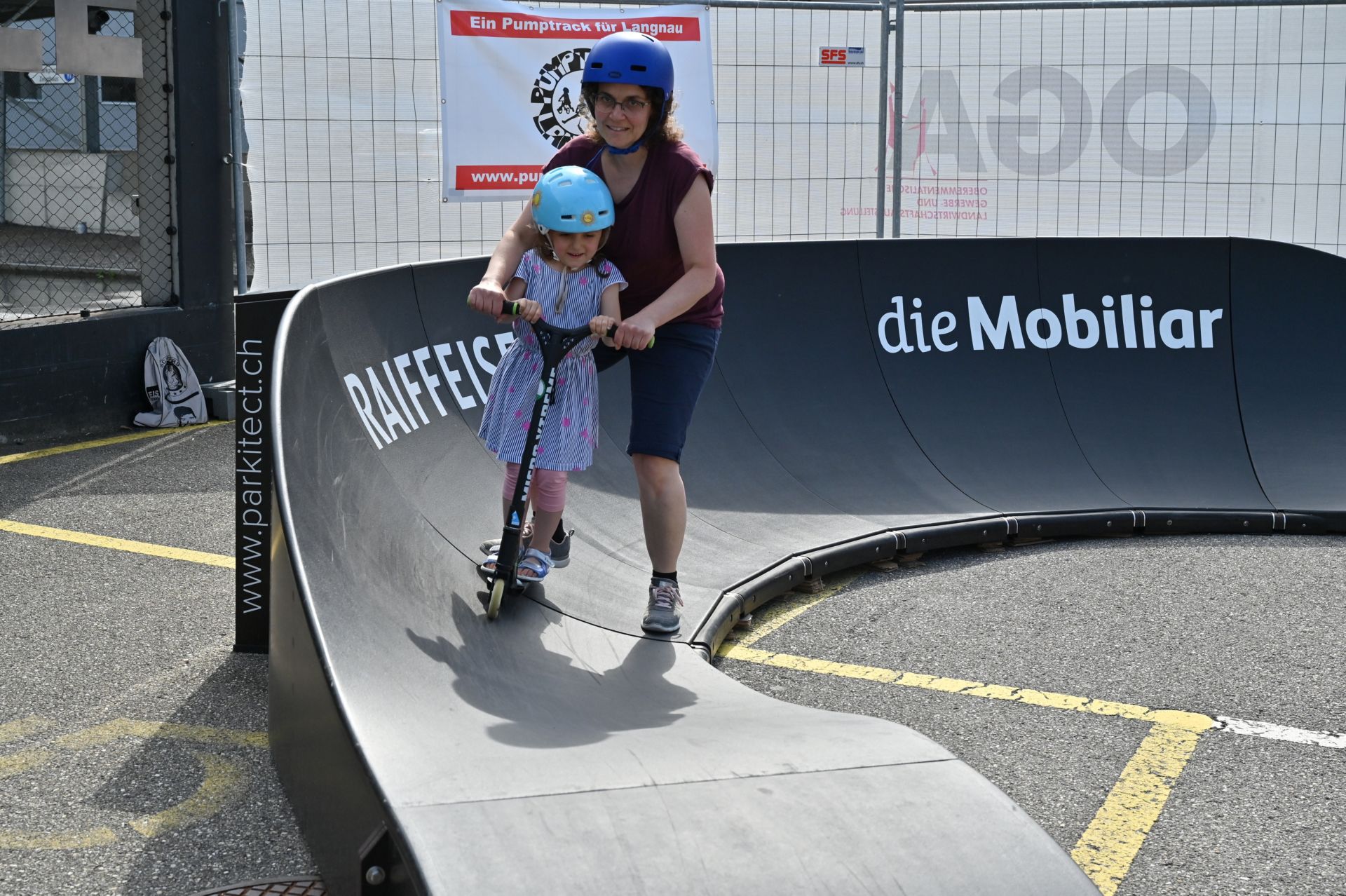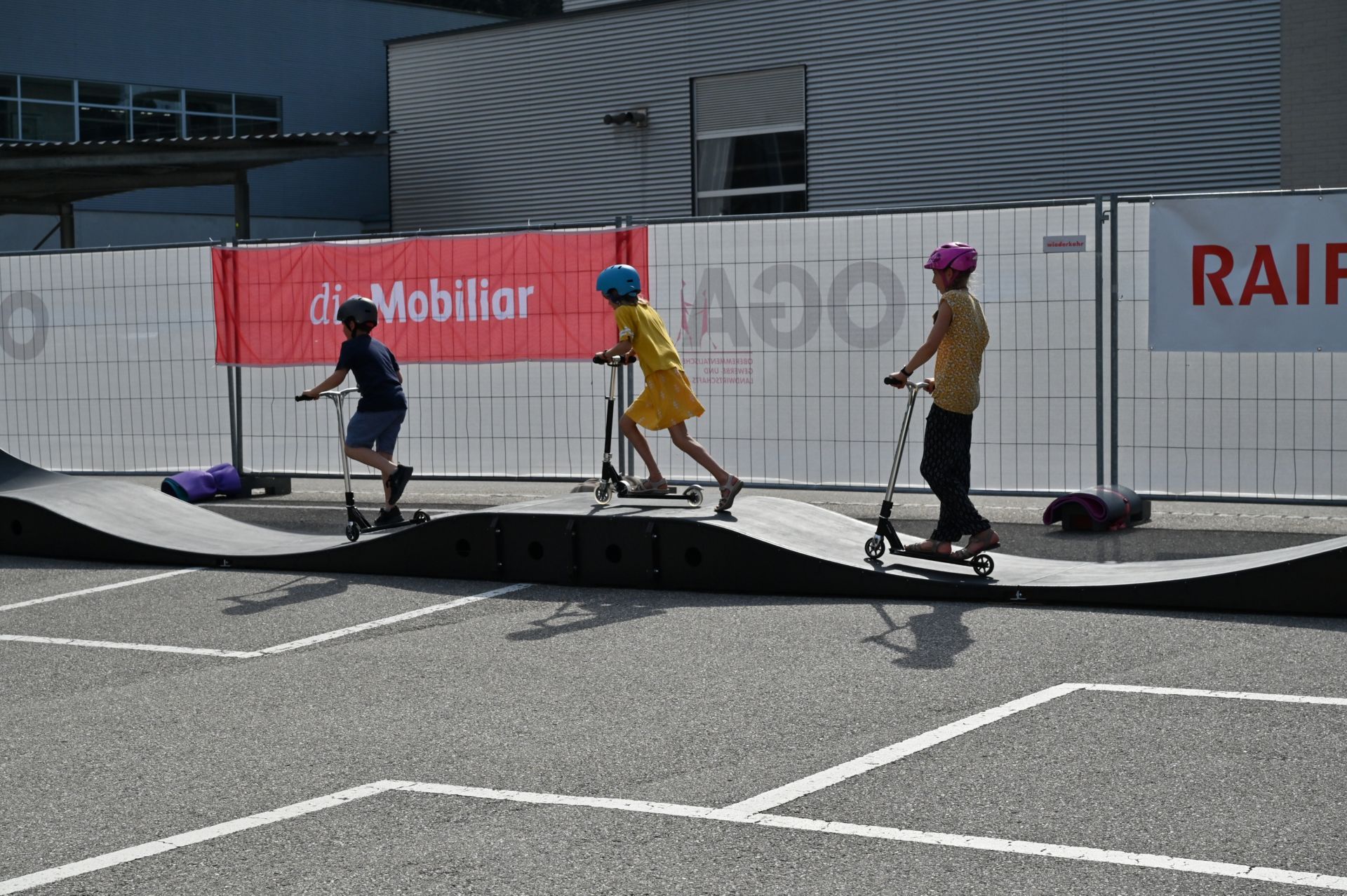 Die mobile Pumptrackanlage kam an der OGA 2022 das erste Mal zum Einsatz. Hunderte Kinder, Jugendliche und vereinzelt Erwachsene drehten ihre Runden mit ihren Scootern, Skateboards und Like-a-Bikes. Die einen schön gemütlich, die anderen schneller; jede Könnerstufe wählt ihre Geschwindigkeit selbst aus. Ein Pumptrack kann aber nicht nur zum Spass befahren werden. Er eignet sich auch hervorragend als Trainingsfeld für ein sicheres Rad- und Trottinettfahren. Es fördert spielerisch die Geschicklichkeit, die Koordination sowie die Kraft und Ausdauer. Mit diesem Freizeitangebot wird der Bevölkerung ein Platz zur sportlichen Betätigung geboten und gleichzeitig ein Ort der Begegnung für Jung und Alt geschaffen.