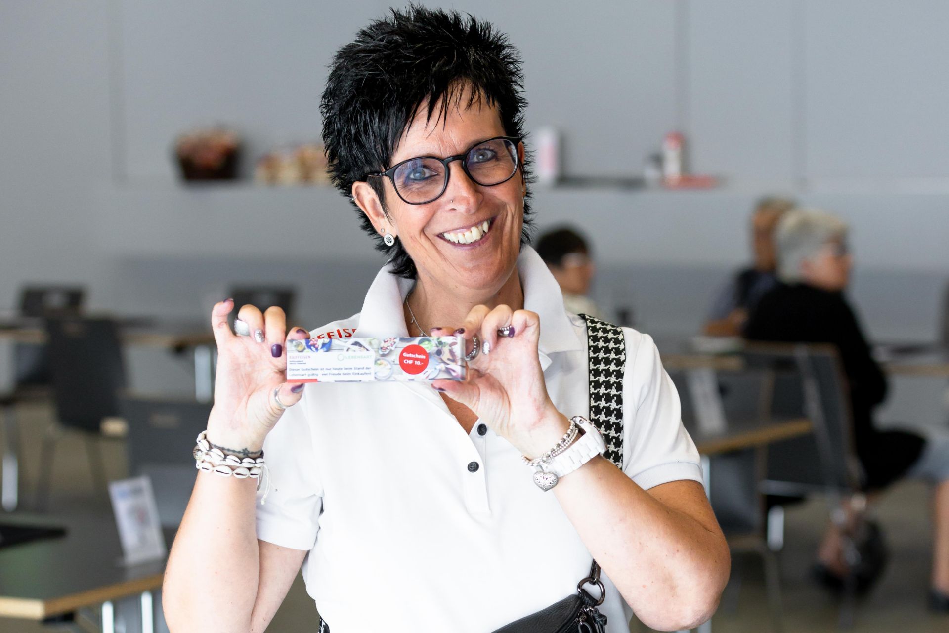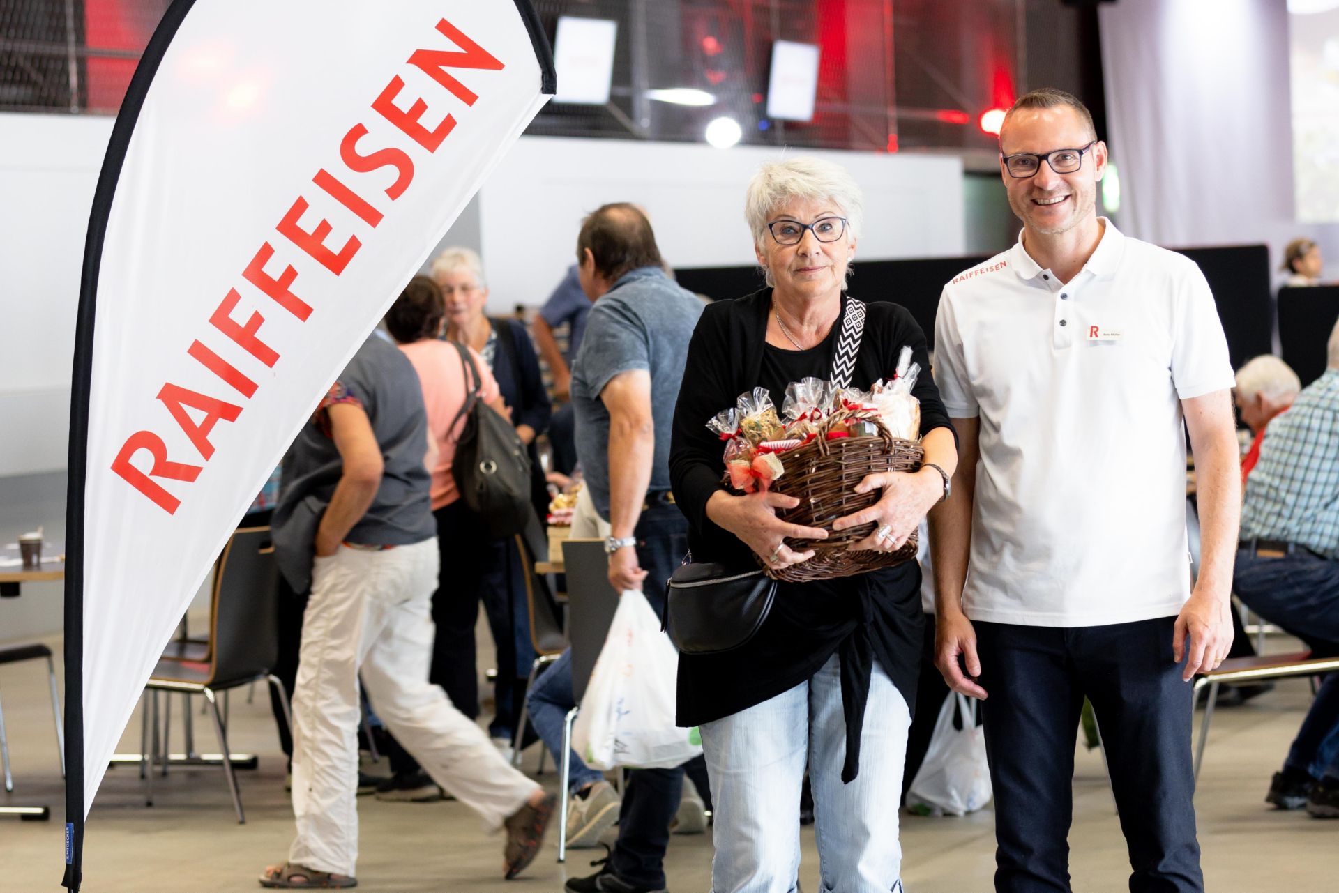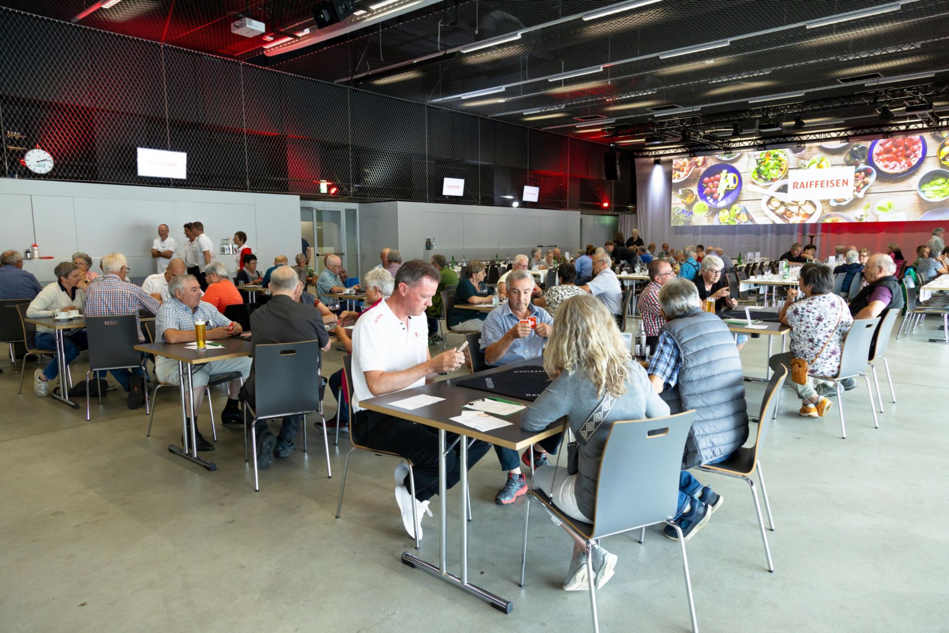 Nach dem Essen begrüsste dann die bekannte Jasskönigin Monika Fasnacht die Gesellschaft. Unter ihrer Leitung fand das erste Raiffeisen-Plausch-Jassturnier statt. Viele Genossenschafter*innen waren begeistert und nahmen voller Freude und Elan am Jassnachmittag teil. Monika Fasnacht sorgte mit ihrer humorvollen Art für viele Lacher und gute Stimmung – Leidenschaft und Ehrgeiz war bei Allen zu spüren!