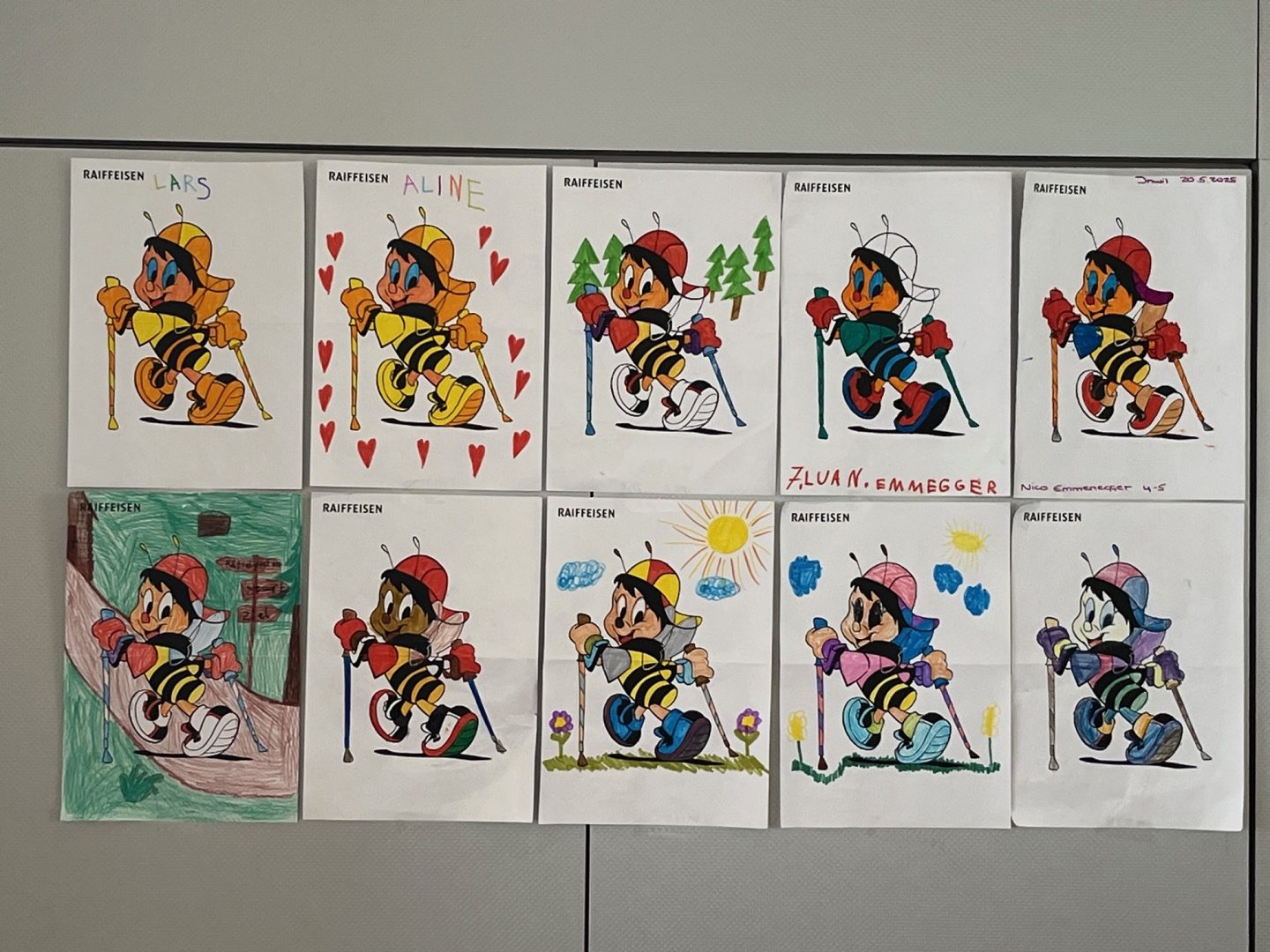 Hochdorf, 10. Juni 2025. Anlässlich des Startes von unserem neuen Raiffeisen Sumsi Trail, haben wir unsere jüngsten Kundinnen und Kunden eingeladen, eine Sumsi Malvorlage auszumalen und in unseren Geschäftsstellen gegen ein kleines Geschenk einzutauschen. Zahlreiche farbige Sumsi sind bereits abgegeben worden und verschönern nun unsere Schalterhallen in Hochdorf, Inwil und Eschenbach.