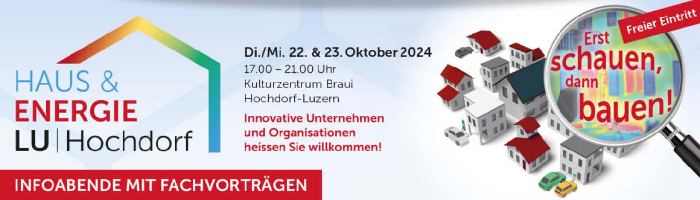 Besuchen Sie uns am 22./23. Oktober 2024 an der Haus & Energie im Kulturzentrum Braui in Hochdorf und nehmen Sie an unserem Fachvortrag zum Thema PV-Anlage teil.