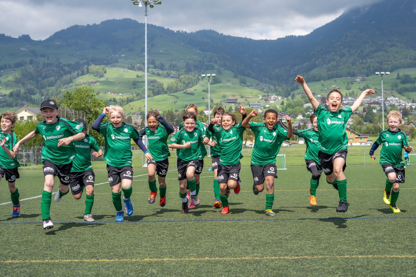Raiffeisenbank Oberseetal kickt am Swisscom Football Camp mit