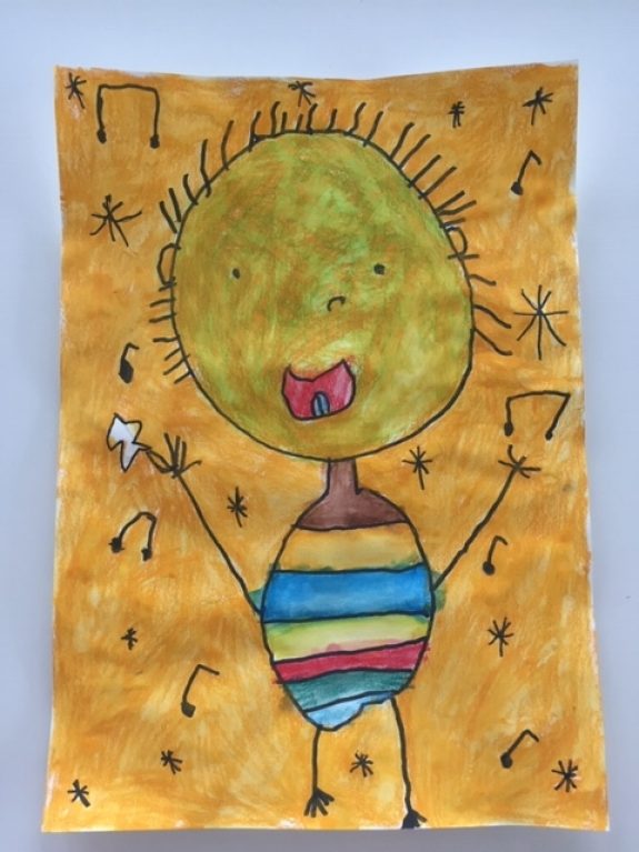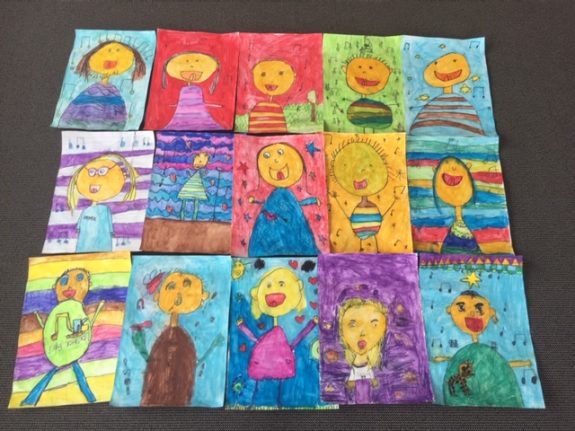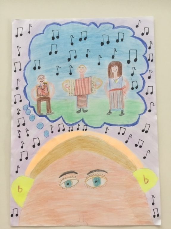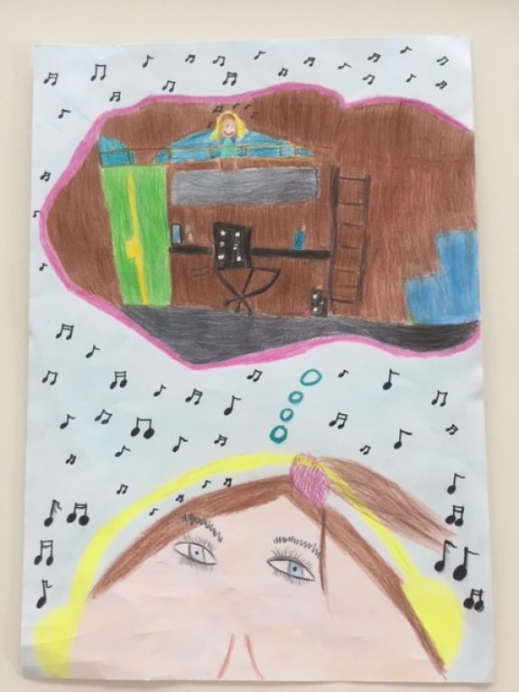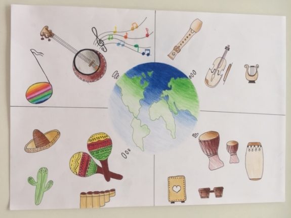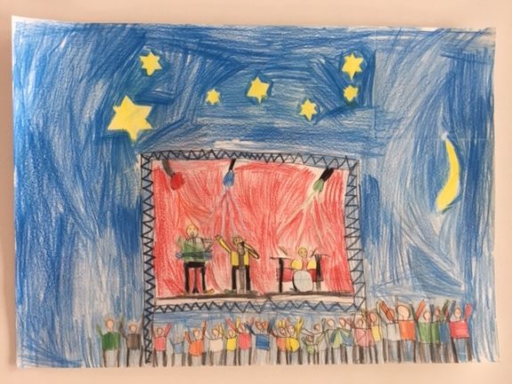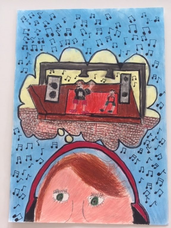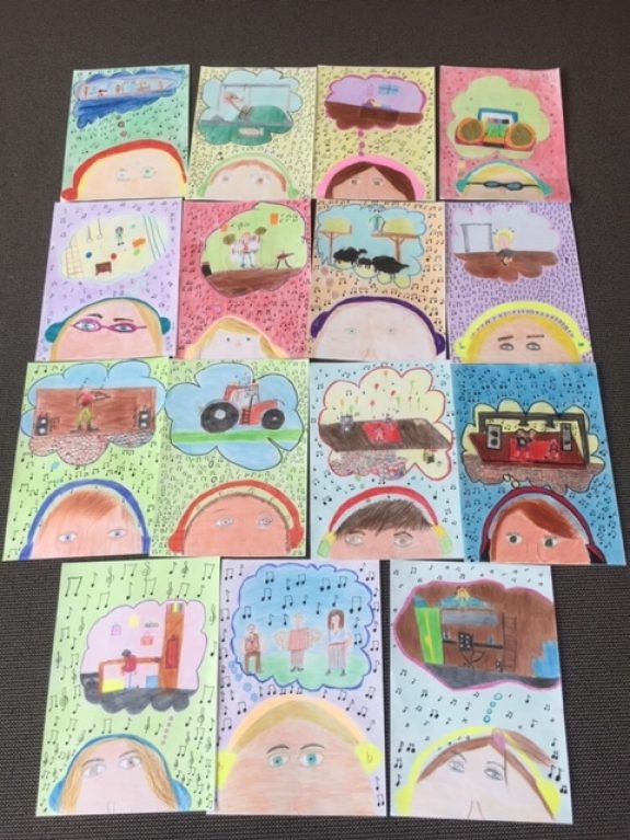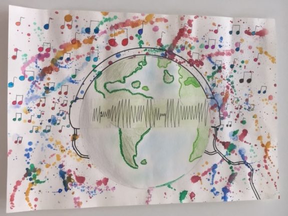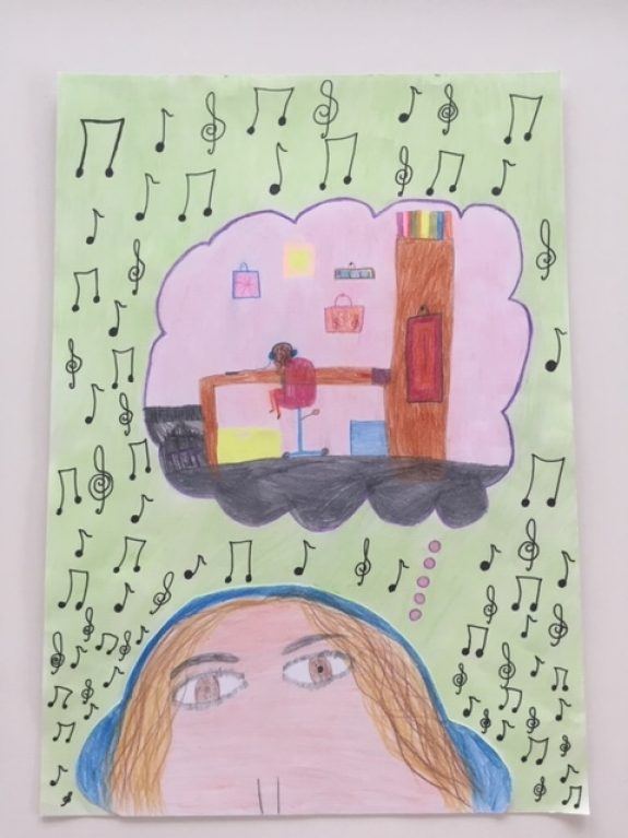 Aufgeteilt nach Jahrgängen erhielten die Kinder ein spezifisches Musik-Tema, welches sie mit unterschiedlichen Hilfsmitteln zu Papier brachten: Von der Collage mit zerbrochenen CDs über Visualisierungen der Lieblingsbands bis hin zum sorgfältig nachgezeichneten Notenschlüssel in bunter Umgebung gab es alles. Die lokale Jury hatte die Qual der Wahl und beriet sich dementsprechend intensiv über die Rangierung.