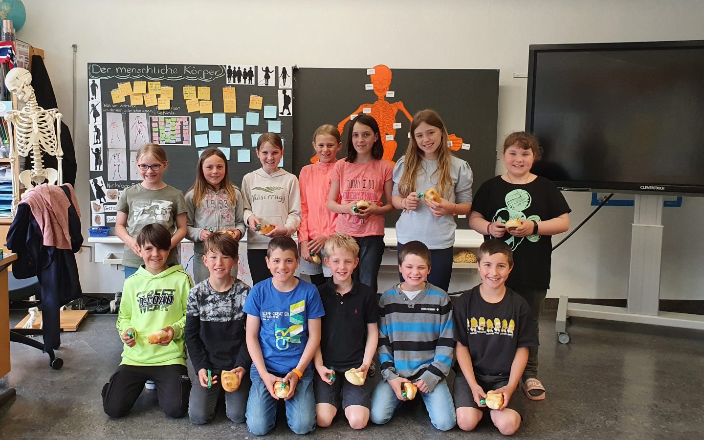 Die Erstklässler haben sich selbst portraitiert; die 5. Klasse hat den Blick auf ihre Welt durch eine Brille kreativ dargestellt und die 4. Klasse hat die Schönheit in Anlehnung an Picasso zu Papier gebracht. Mit dem Schoggibrügeli und Weggli konnten die hungrigen Bäuche gefüllt und danach wieder voller Tatendrang zum Lernen übergegangen werden.