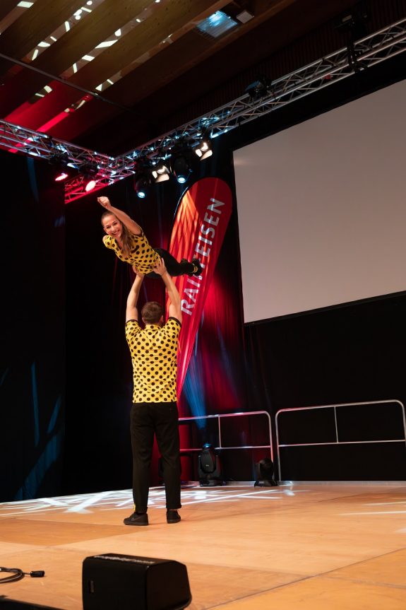 Für den musikalischen Rahmen sorgten am GV-Abend die Musikgesellschaft Nesslau-Neu St. Johann sowie die Jodlergruppe Stockberg. Nach dem Abendessen traten als Hauptshowact styleacrobats auf. Mit ihren Sprüngen und Comedyeinlagen begeisterten sie die anwesenden Gäste. Als letzter Programmpunkt und in verkürzter Abfolge durften die glücklichen Gewinner:innen an der traditionellen Tombola ihre Preise entgegennehmen. An der Live-Ziehung gegen Ende des Abends wurde als Hauptpreis 1x 2 Festivalpässe inklusive Konsumationsgutscheine für das 14. Irish Openair Toggenburg vom 6. und 7. September 2024 in Ennetbühl verlost. Die Raiffeisenbank Obertoggenburg unterstützt den Anlass bereits seit dessen Anfängen als Sponsorin. Der glückliche Gewinner darf nun gemeinsam mit einer Begleitperson ein Wochenende lang Musik der Extraklasse geniessen und in die Welt des Irish Openair eintauchen - wir wünschen viel Spass!