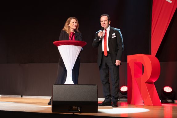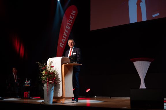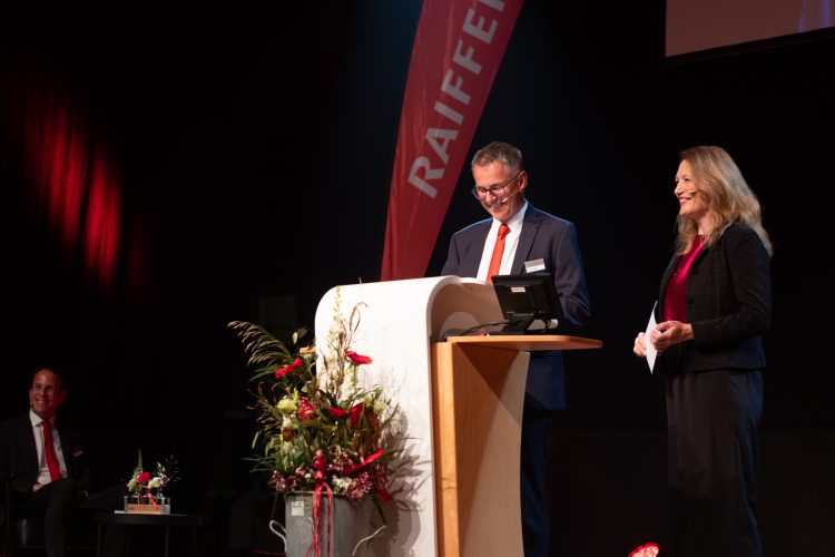 Unter dem Stichwort «Engagement» führte Verwaltungsratspräsident Markus Hobi ausgewählte Veranstaltungen auf, bei denen sich die Raiffeisenbank Obertoggenburg engagiert. Sei dies die Gewerbeausstellung Wildhaus-Alt St. Johann, das St. Galler Kantonalschwingfest, der Toggenburger Kreismusiktag oder die Eröffnung des Klanghauses. Bei Letzterem gab Mathias Müller (Stiftungsratspräsident der Klangwelt Toggenburg) im Kurz-Interview mit Regula Elsener weitere Einblicke zu den Projekten der Klangwelt und was uns dabei noch erwartet.