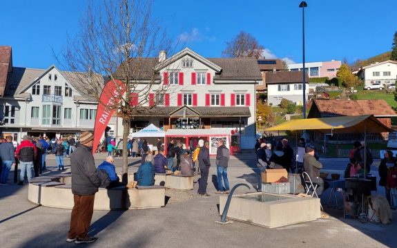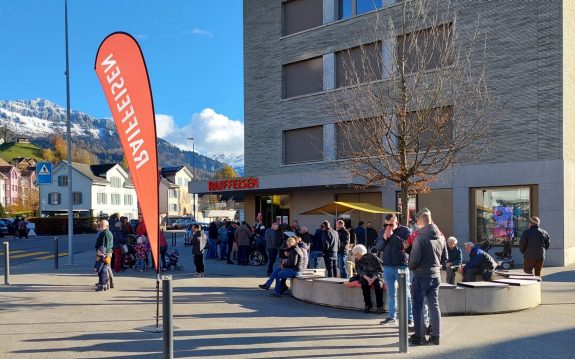Die Schalterhalle war während dem ganzen Sonntag gut besucht. Es wurden anregende Gespräche geführt, mit einem Glas Wein angestossen und nicht zuletzt auch am Wettbewerb teilgenommen. Zu beantworten gab es knifflige Fragen aus dem Banken- und Versicherungsbereich. Als Sofortpreis durften alle Teilnehmenden am Raiffeisen-Marronistand eine heisse Portion der feinen Edelkastanie entgegen nehmen.
