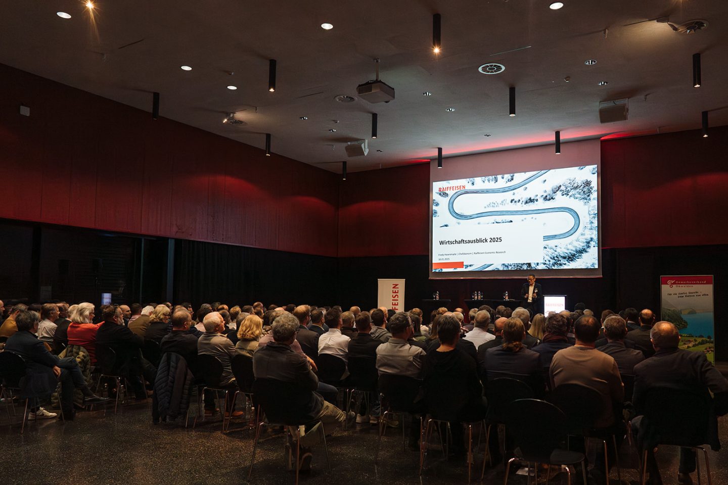 Die Raiffeisenbank Obwalden organisierte in Partnerschaft mit dem Gewerbeverband Obwalden am Donnerstag, 30. Januar 2025 in der Kantonsschule Obwalden in Sarnen den traditionellen ApérOW. Einleitend gab der Chefökonom der Raiffeisen Schweiz, Fredy Hasenmaile, einen Ausblick auf das Wirtschaftsjahr 2025.