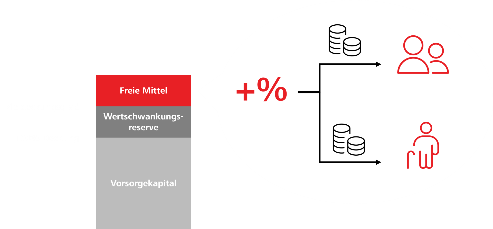 Ist der Zieldeckungsgrad erreicht, entstehen freie Mittel, die dank der Überschussbeteiligung systematisch an die Versicherten ausgeschüttet werden. Damit wiederum wird verhindert, dass freie Mittel in der Pensionskasse gehortet werden.