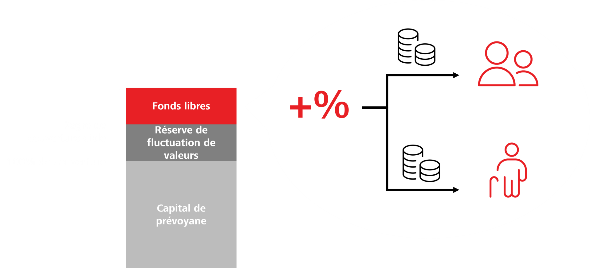 - Dès que la réserve de fluctuation de valeur est remplie, tous les actifs bénéficient – en plus de la rémunération ordinaire des avoirs de vieillesse – d’un intérêt supplémentaire issu de la Participation aux excédents.