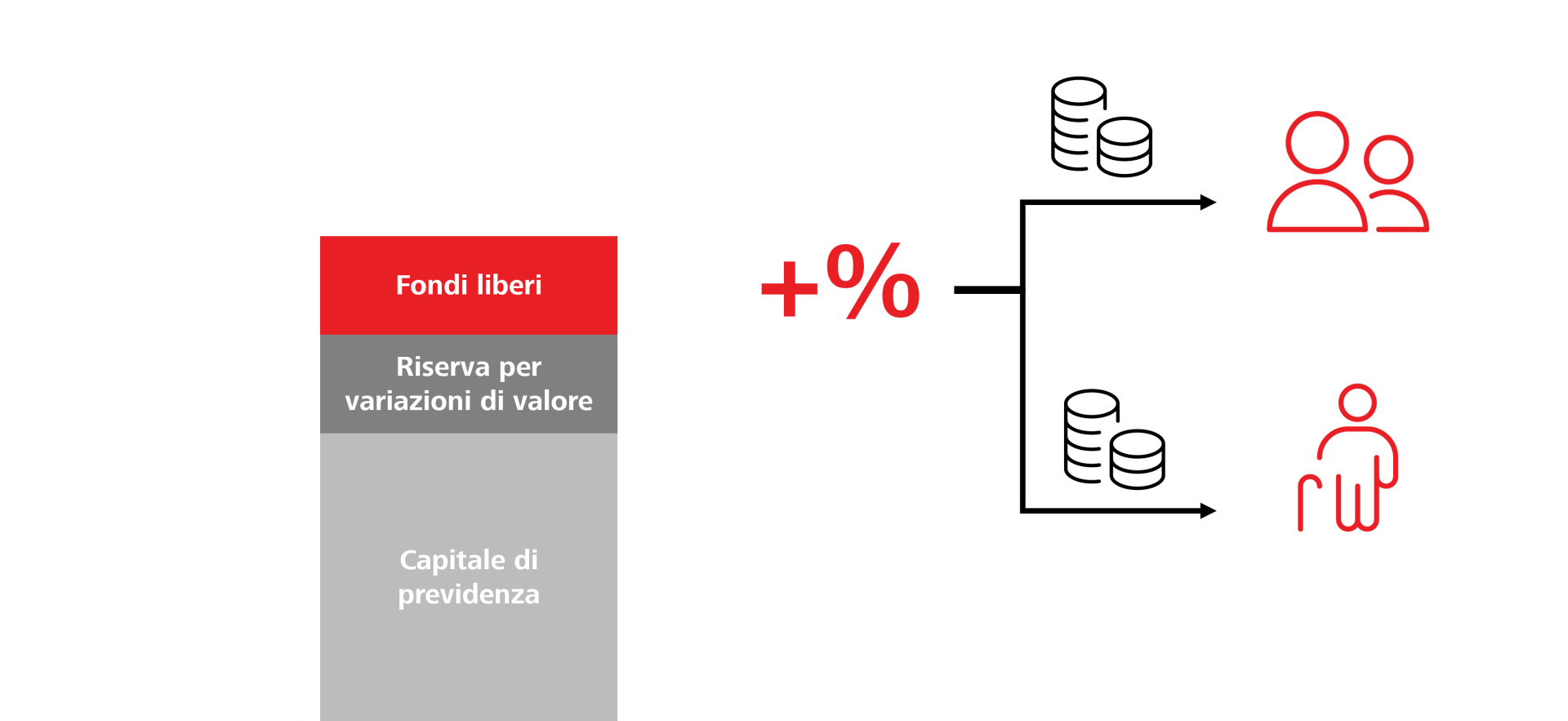 Una volta raggiunto il grado di copertura target si creano fondi liberi, che vengono distribuiti sistematicamente agli assicurati grazie alla Partecipazione alle eccedenze. In questo modo si evita che i fondi liberi vengano trattenuti nella Cassa pensioni.