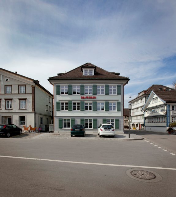 Appenzell Raiffeisenbank: Appenzell Eröffnet: 2011 Architekt: Jeannette Geissmann, Regula Geisser, Marcel Züllig, St.Gallen Fotografie: Jean-Claude Jossen, St.Gallen