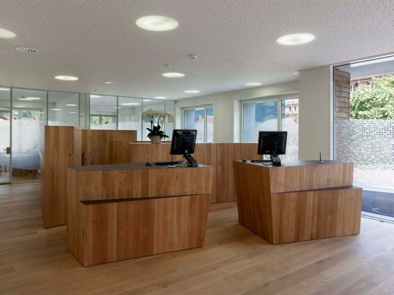 De Echallens Raiffeisenbank du Gros-de-Vaud Eröffnet: Mai 2020 Architekt: 3demArch Sàrl, Crissier Innenarchitekt: Gehri AG, Aarberg Fotografie: Gehri AG, Aarberg