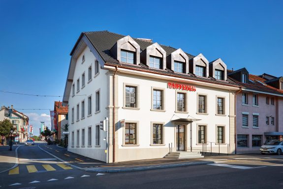 Courroux Raiffeisenbank: du Val-Terbi Eröffnet: 2006 Architekt: GIM Architekten, Bern Projekt: Martin Kaiser Raiffeisen Schweiz Fotografie: Peter Leuenberger