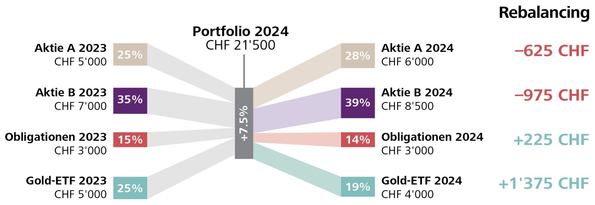 Wichtig: Ohne regelmässige Korrektur kann sich ein Portfolio ungewollt in eine riskantere – oder weniger ertragreiche – Richtung verschieben.