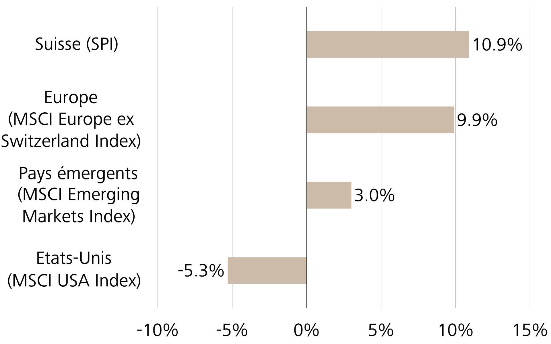 Malgré des conditions difficiles, la plupart des valeurs de consommation suisses ont affiché une évolution très solide cette année. Les actions du groupe de produits de luxe Richemont et du producteur de chocolat Lindt & Sprüngli ont progressé d’environ 20% chacune. Après un changement de direction et une réorientation stratégique, les valeurs de la multinationale agroalimentaire Nestlé ont, elles aussi, progressé de 10%. L’action Nestlé se situe donc au même niveau que le Swiss Performance Index. Swatch Group (+3%) et Emmi (-1%) ont affiché un peu plus de difficultés. Cette évolution montre clairement que les marques haut de gamme continuent de bien se vendre, tandis que les produits du segment bas de gamme rencontrent davantage de difficultés. Il en va de même pour la bourse: à long terme, la qualité l’emporte toujours.