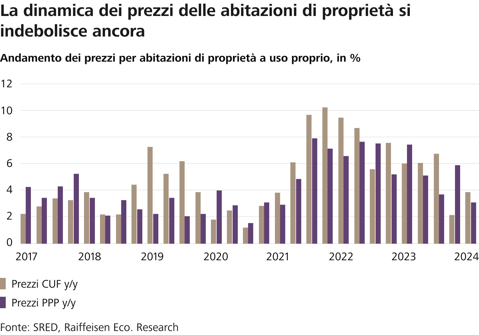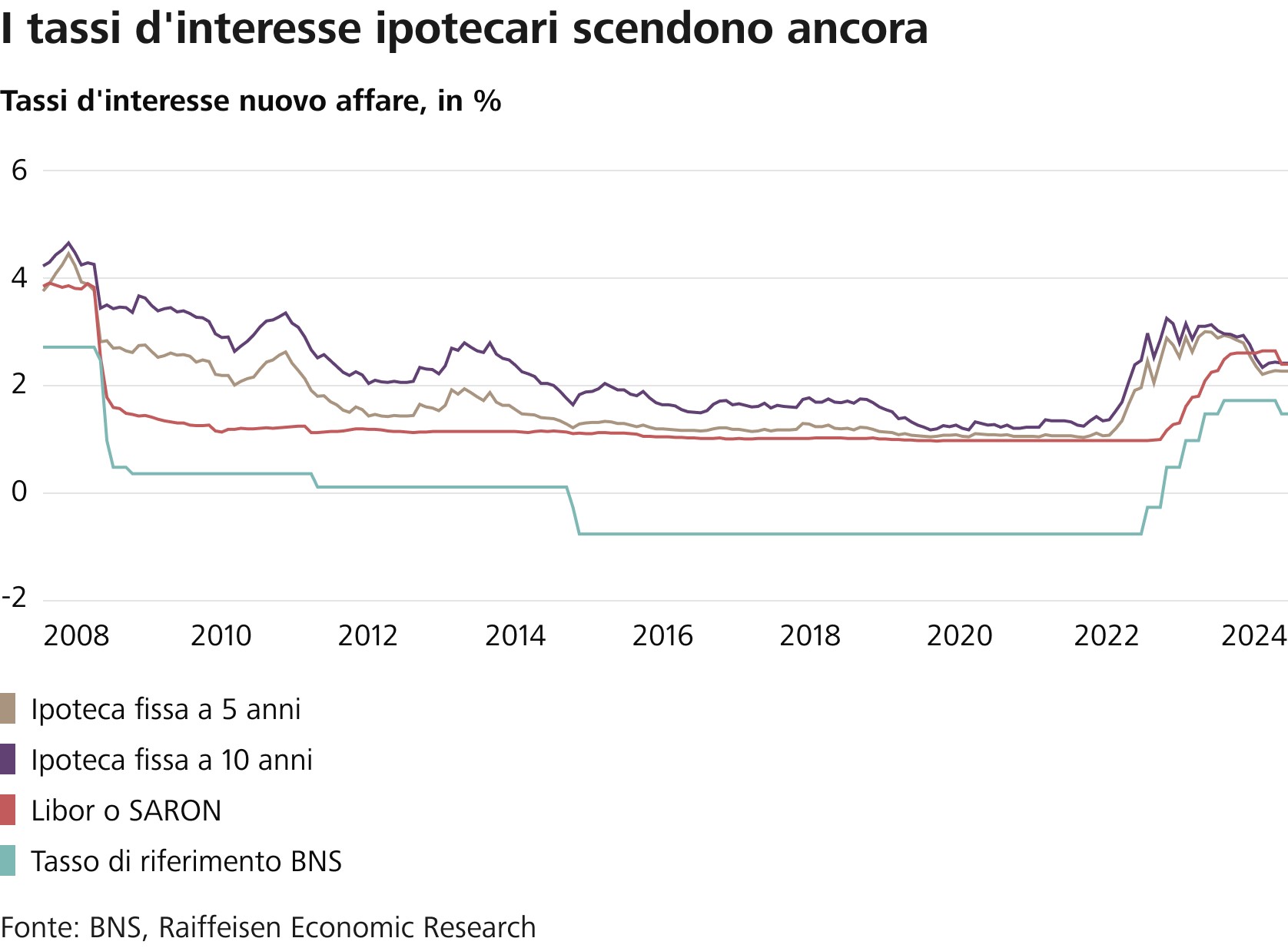 Grazie al ciclo di riduzione dei tassi d'interesse avviato dalla Banca nazionale svizzera, l'aumento del tasso d'interesse di riferimento del dicembre 2023 per il momento dovrebbe essere l'ultimo. Coloro che sono già locatari, quindi, non devono temere ulteriori aumenti dei costi abitativi nel prossimo futuro. Tuttavia, ciò non fermerà l'aumento continuo e a lungo termine degli affitti. Infatti la carenza di alloggi, che continua ad accentuarsi, fa sì che gli affitti offerti continuino a salire – di recente addirittura al tasso di crescita annuale più alto dal 1996. «L'adeguamento dei prezzi al livello abituale per la località e il quartiere al momento del cambio di inquilini e le nuove abitazioni offerte a condizioni di mercato standard, fanno nel complesso salire gli affitti. Prima o poi ciò comporterà un aumento dei costi abitativi per tutte le famiglie in locazione», afferma Hasenmaile.