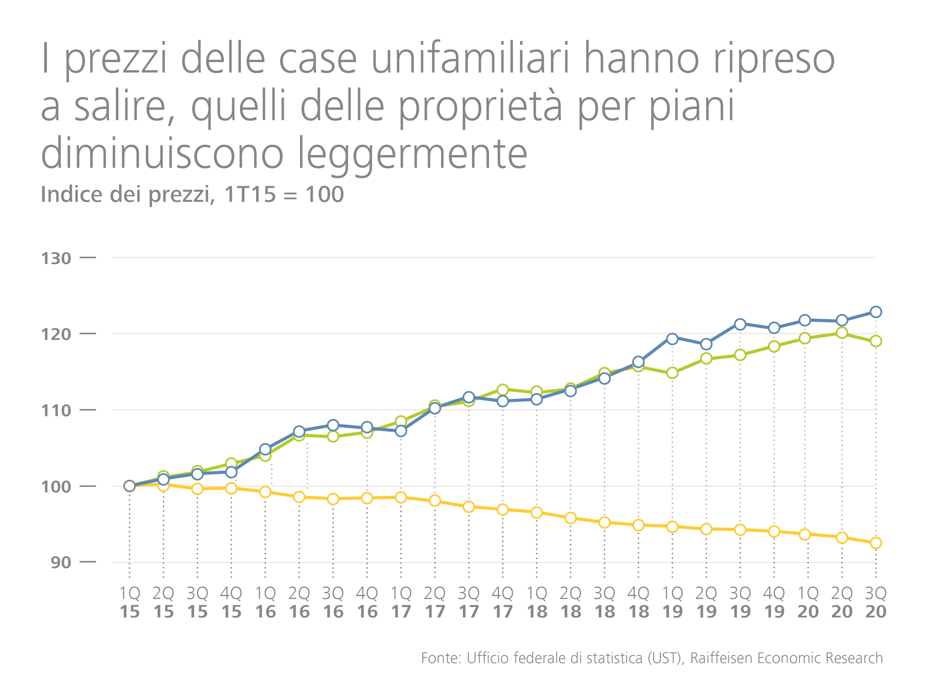 La studio «Immobili Svizzera» offre ogni trimestre una valutazione dettagliata del mercato svizzero degli immobili a uso abitativo. La studio attuale e altre informazioni sono disponibili su www.raiffeisencasa.ch.