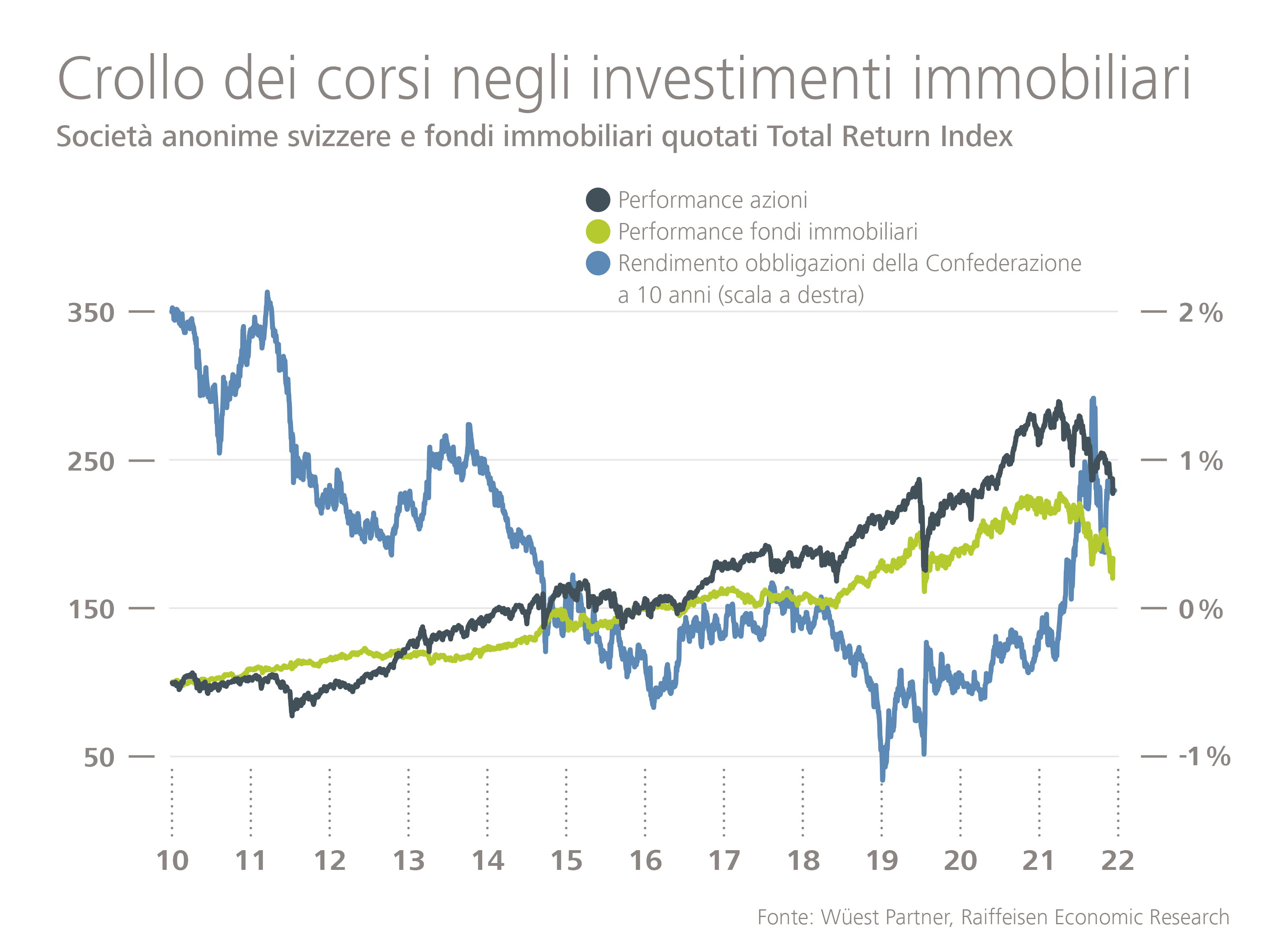 All'orizzonte del mercato degli immobili a reddito si addensano invece fosche nubi. Con l'improvvisa fine dell'era dei tassi negativi, il contesto di mercato degli investimenti immobiliari diretti è cambiato molto, come emerge tra l'altro nella drastica rettifica di valutazione dei fondi immobiliari svizzeri. Se nell'autunno del 2021 la capitalizzazione di mercato di tutti i fondi immobiliari quotati si assestava ancora a circa il 45 per cento sopra al valore di inventario netto, fino a fine ottobre 2022 questa differenza era di circa l'undici per cento. Al momento molto depone a favore di una forte contrazione della domanda degli oggetti di investimento. A causa dei maggiori costi di finanziamento, oggi molti investimenti finanziati con capitale di terzi non sono più redditizi. Soprattutto il modello buy-to-let, pensato per i privati e risultato molto lucrativo negli ultimi anni, ormai in molti casi non conviene più.