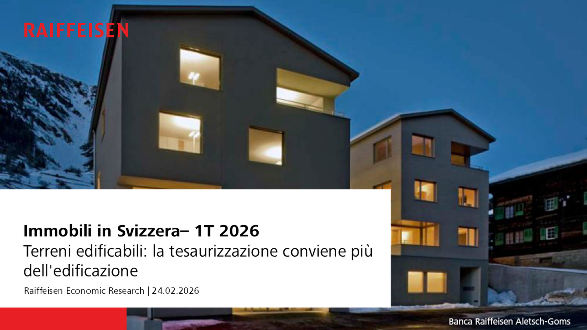 Con la detenzione di terreni edificabili si ottiene un rendimento maggiore rispetto alla loro edificazione. Poiché misure incisive di mobilizzazione dei terreni edificabili si fanno attendere, una fonte importante di spazi abitativi a prezzi convenienti e socialmente sostenibili rimane congelata. Trovate maggiori informazioni sull'argomento nell'ultimo studio «Immobili in Svizzera» di Raiffeisen Economic Research.